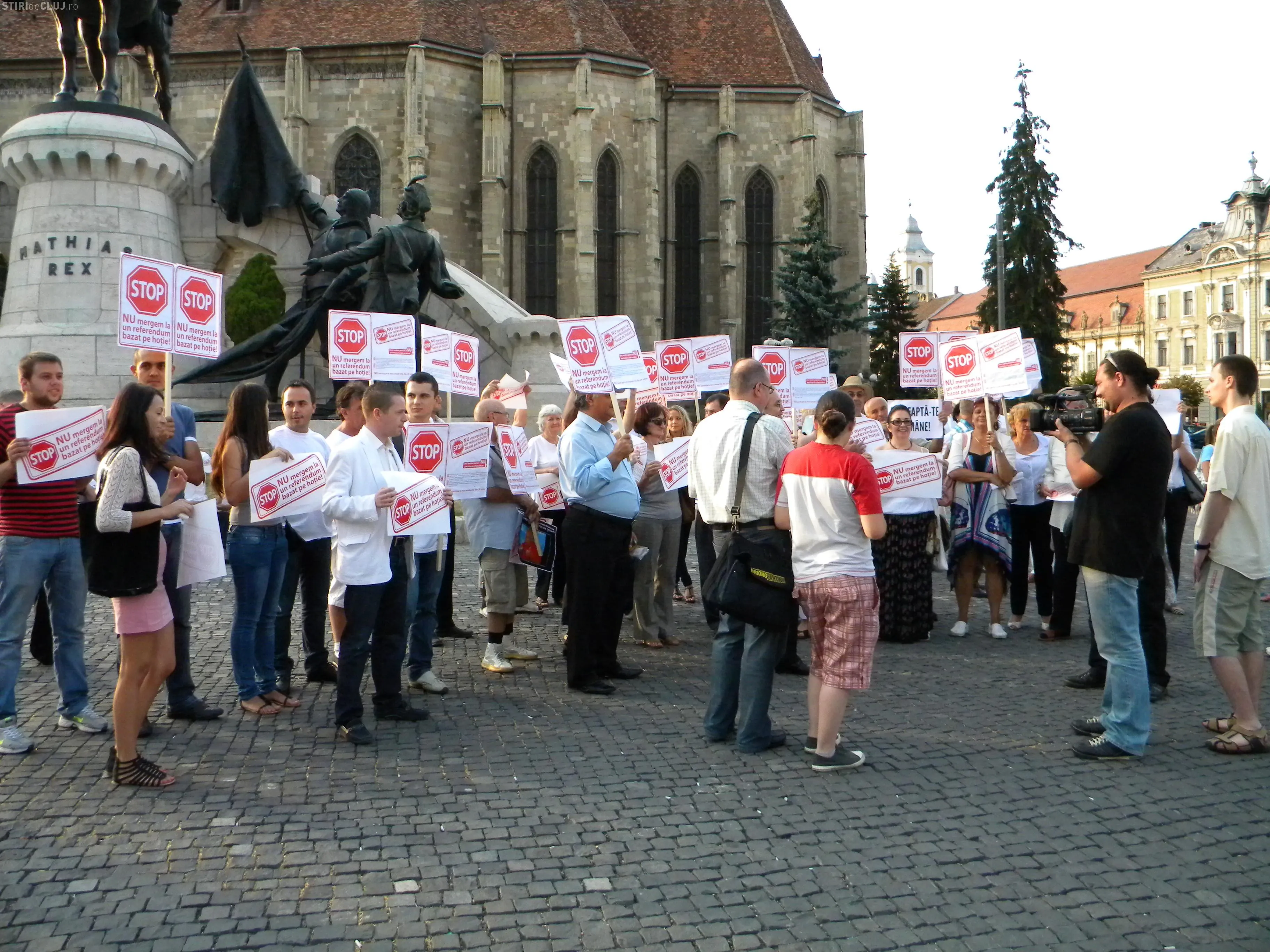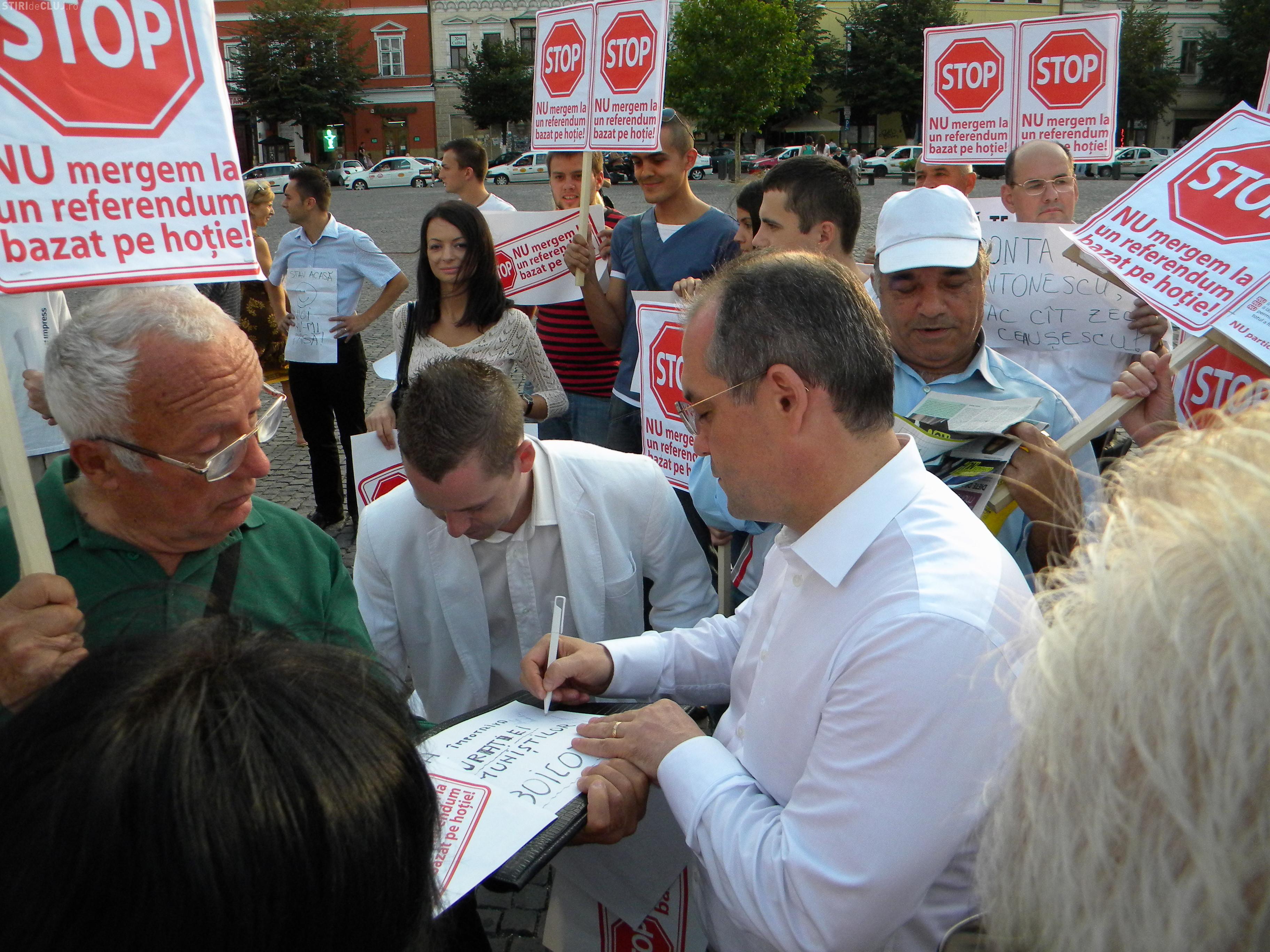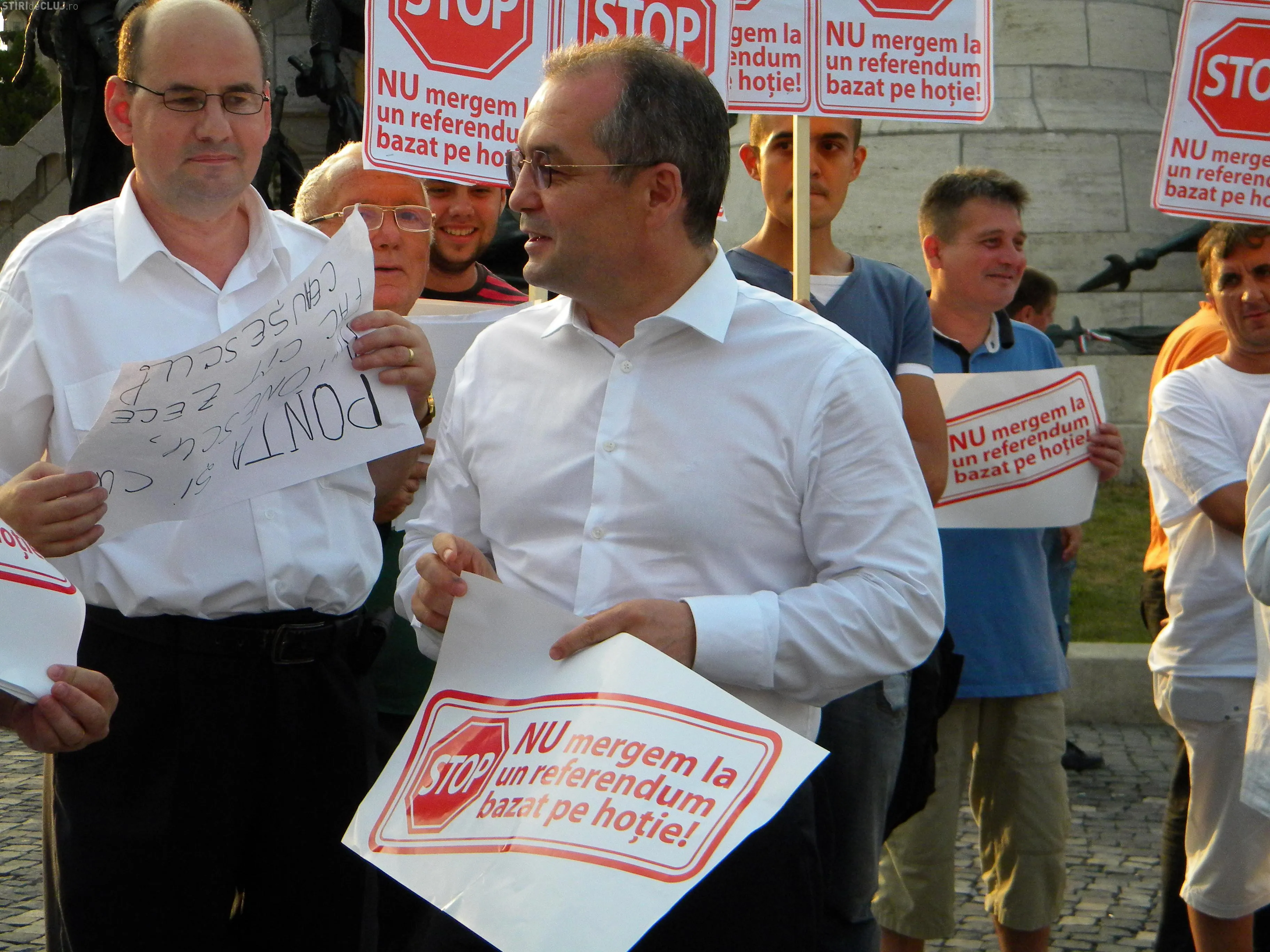La miting a fost prezent, la fel ca ieri (26 iulie), şi primarul Clujului Emil Boc.
