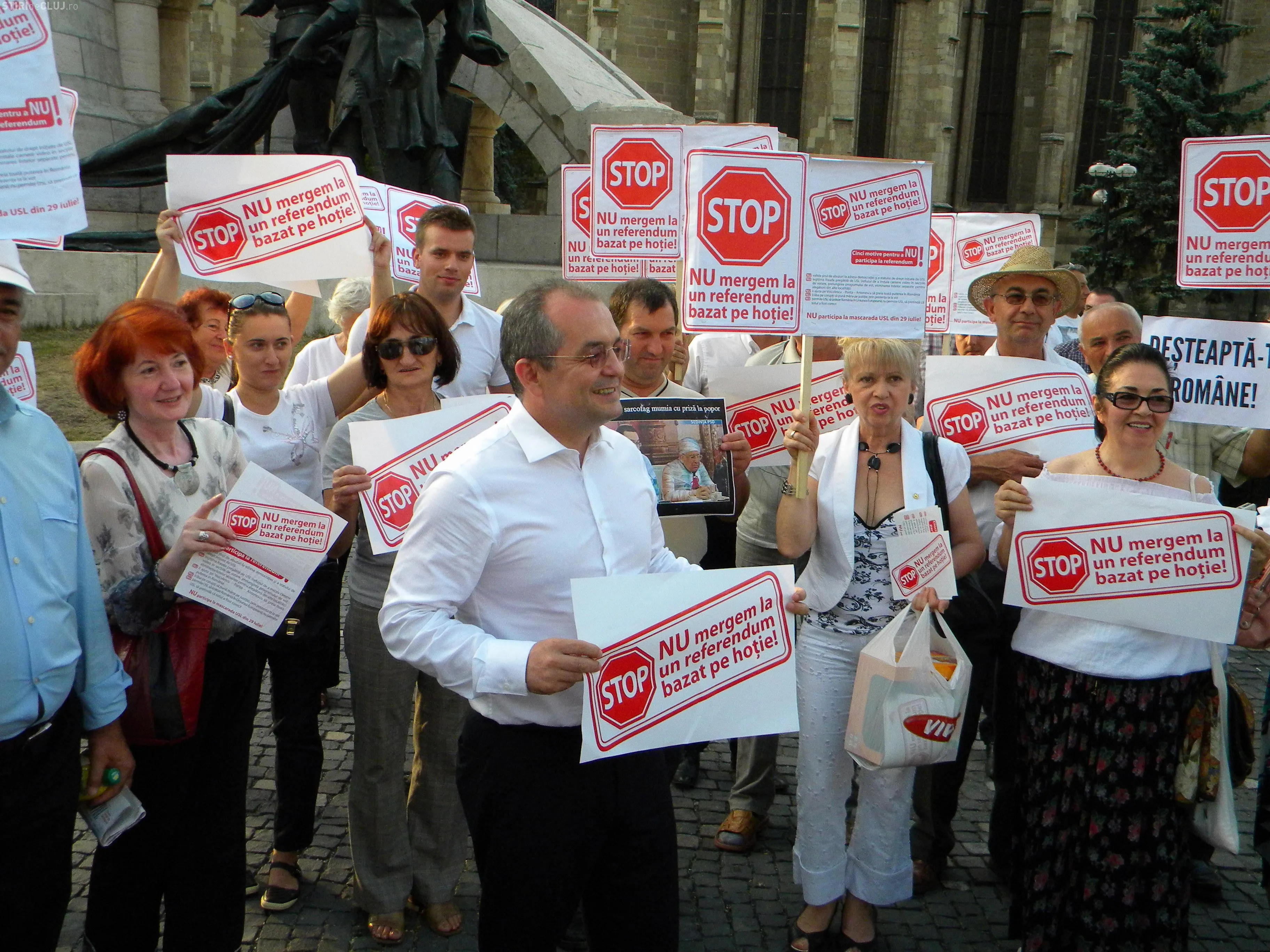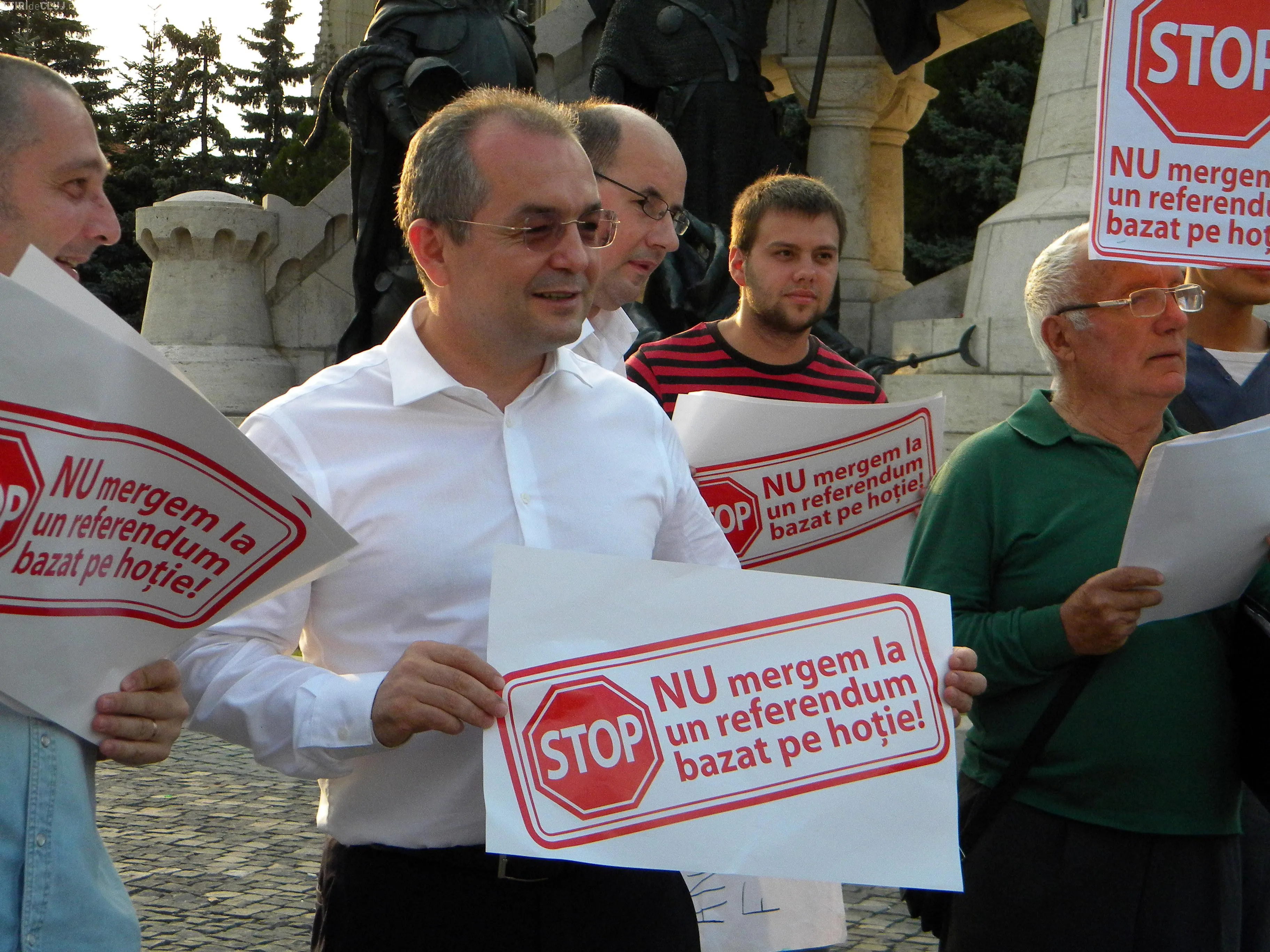 "Mesajul meu rămâne acelaşi şi constant: duminică nu merg la vot şi le recomand tuturor clujenilor şi celor care cred în democraţie şi în statul de drept să nu meargă la referendum. Este un drept legal al fiecărui cetăţean de a merge sau de a nu merge la referendum. eu consider că în acest momentu pentru a proteja democraţia din această ţară şi pentru a reface imaginea distrusă e nevoie ca oamenii să nu meargă la acest referendum care nu are acoperire constituţională şi aminteşte mai mult de practicile staliniste decât de cele democratice dintr-un stat de drept", a declarat edilul.