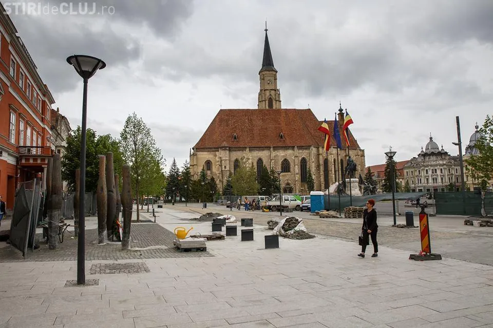 Primăria Cluj-Napoca susține că lucrările de amenajare și modernizare a laturii vestice din Piața Unirii sunt aproape terminate.
