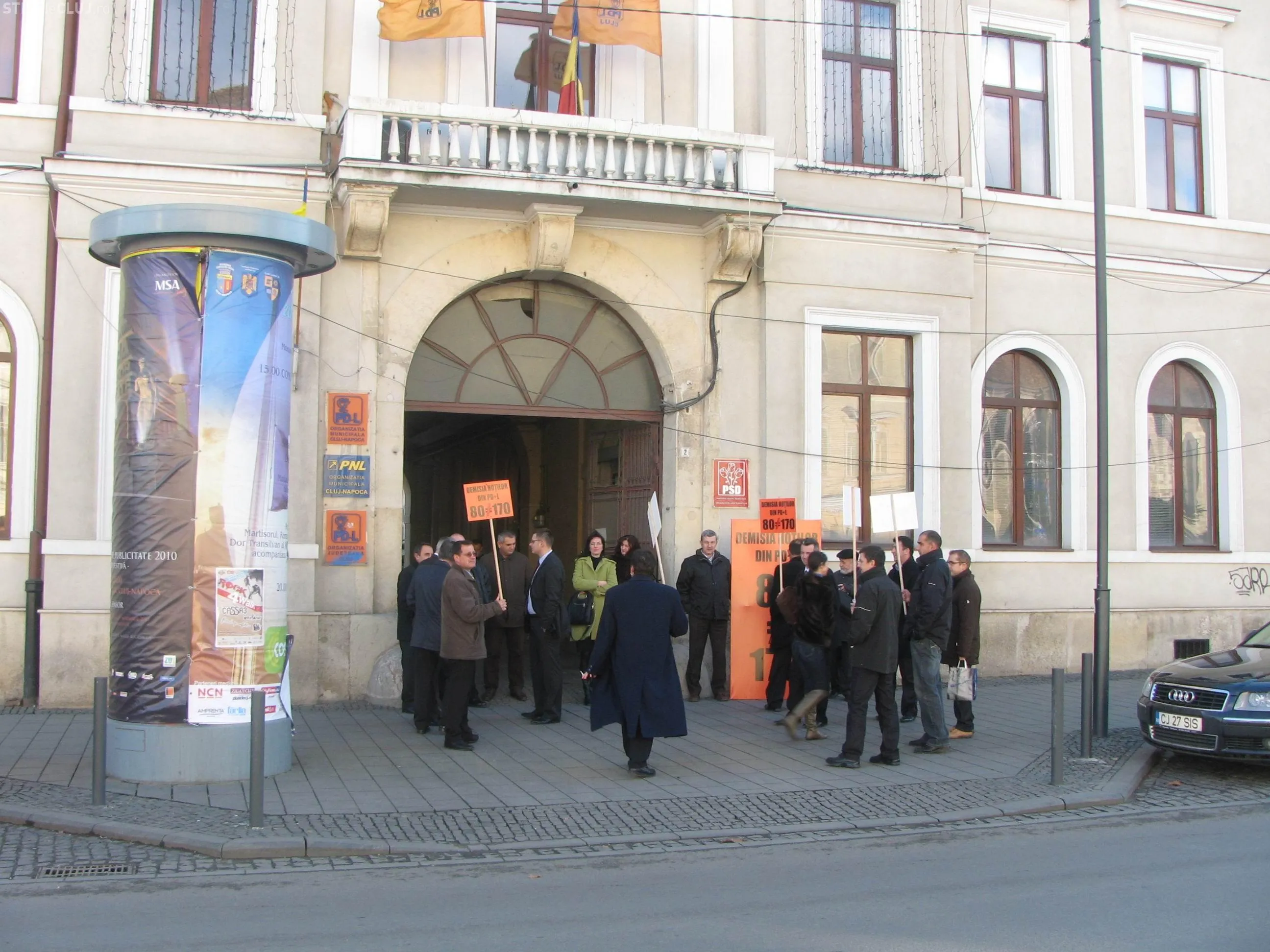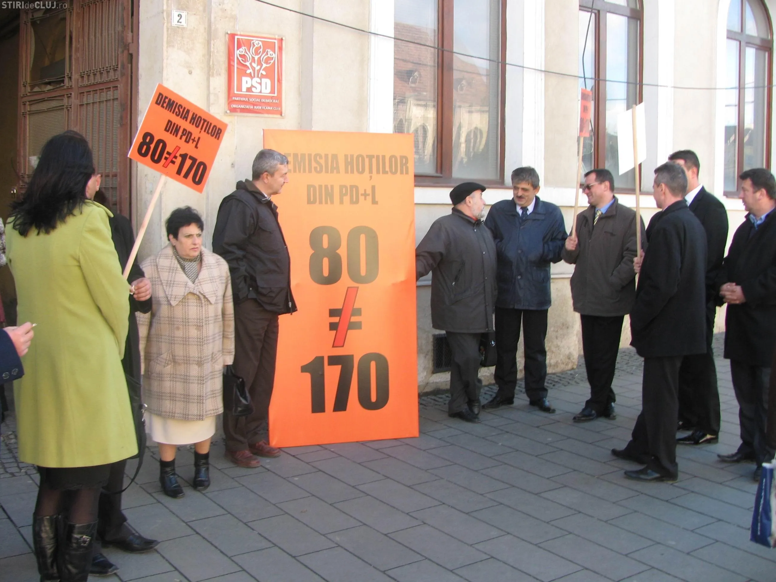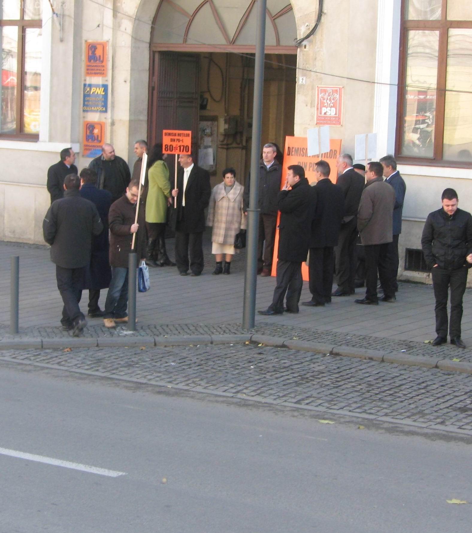 Liberalii clujeani, in frunte cu deputatul Horea Uioreanu, au pichetat si astazi sediul PDL - FOTO