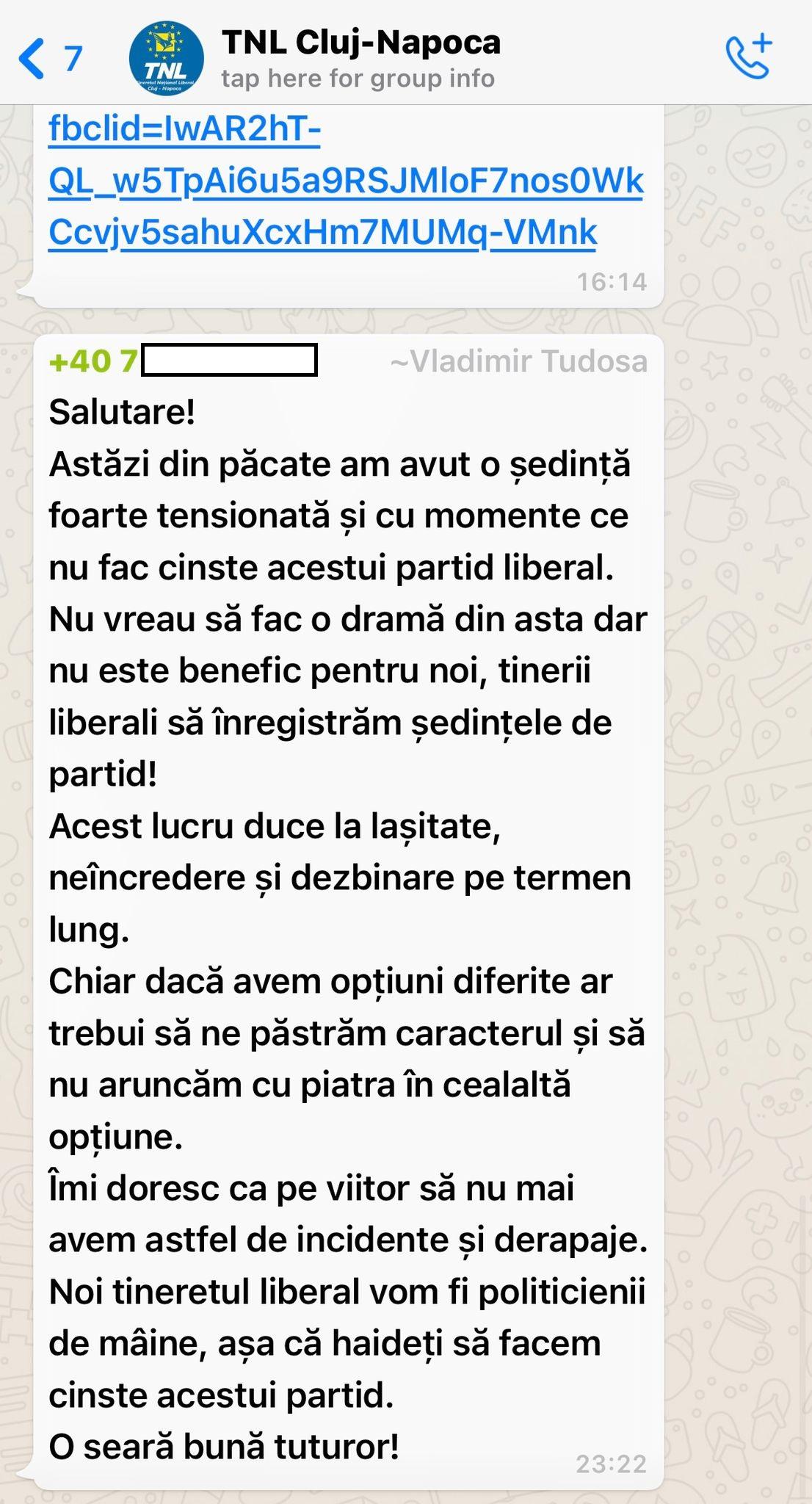 Un tânăr din PNL Cluj dezvăluie corupția morală din acest partid, care începe chiar de la tineret. La o ședință a Tineretului Național Liberal Cluj, de zilele trecute, unde se discuta despre participarea la alegerile de sâmbătă, 25 septembrie, pentru funcția de președinte, oamenii s-au trezit că sunt înregistrați.
