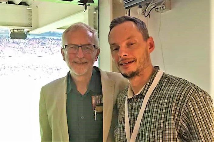 Foto: Jeremy Corbyn (stânga), istoricul Cosmin Rusu (dreapta)