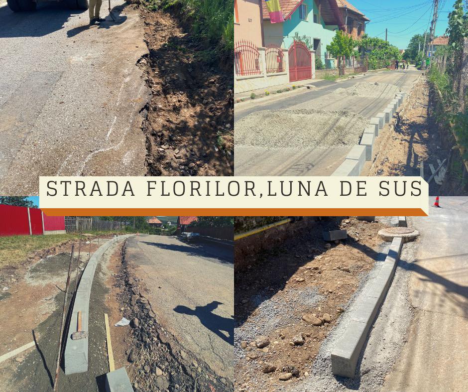 În această perioadă continuă lucrări de asfaltare și modernizare pe strada Florilor în Luna de Sus și vor fi realizați peste 700 de metri liniari de trotuar.