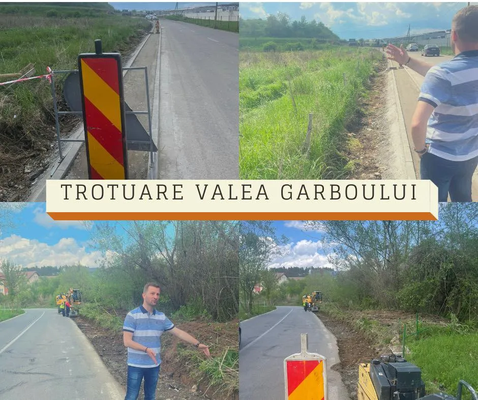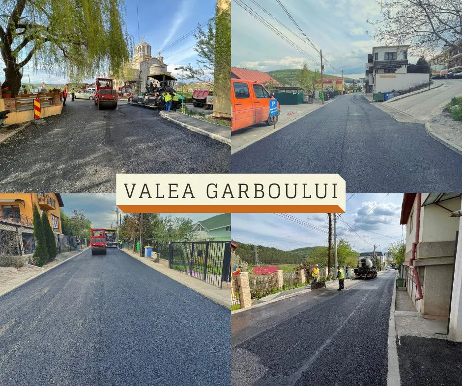 La sfârșitul lunii trecute au fost realizate lucrări de asfaltare carosabil și trotuare pe o lungime de aproximativ 300 de metri liniari, pe strada Valea Gârboului, mai spune edilul.