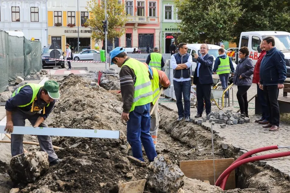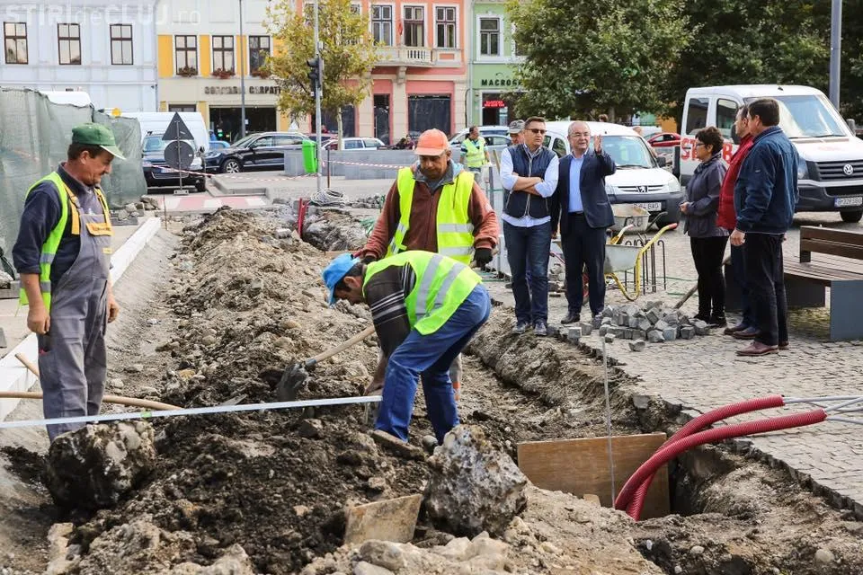 Primăria anunță că lucrările de modernizare ale laturii estice a Pieței Unirii sunt în toi, iar primarul a fost deja să viziteze și șantierul, după prima săptămână de muncă.