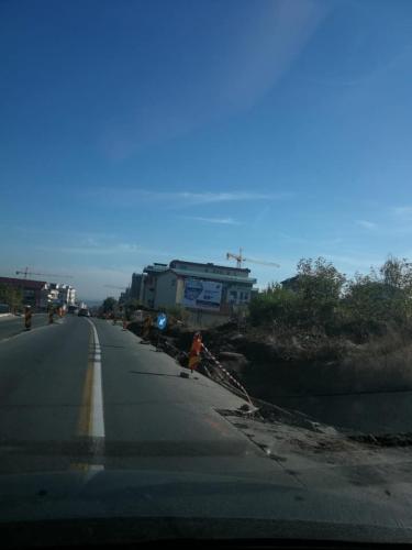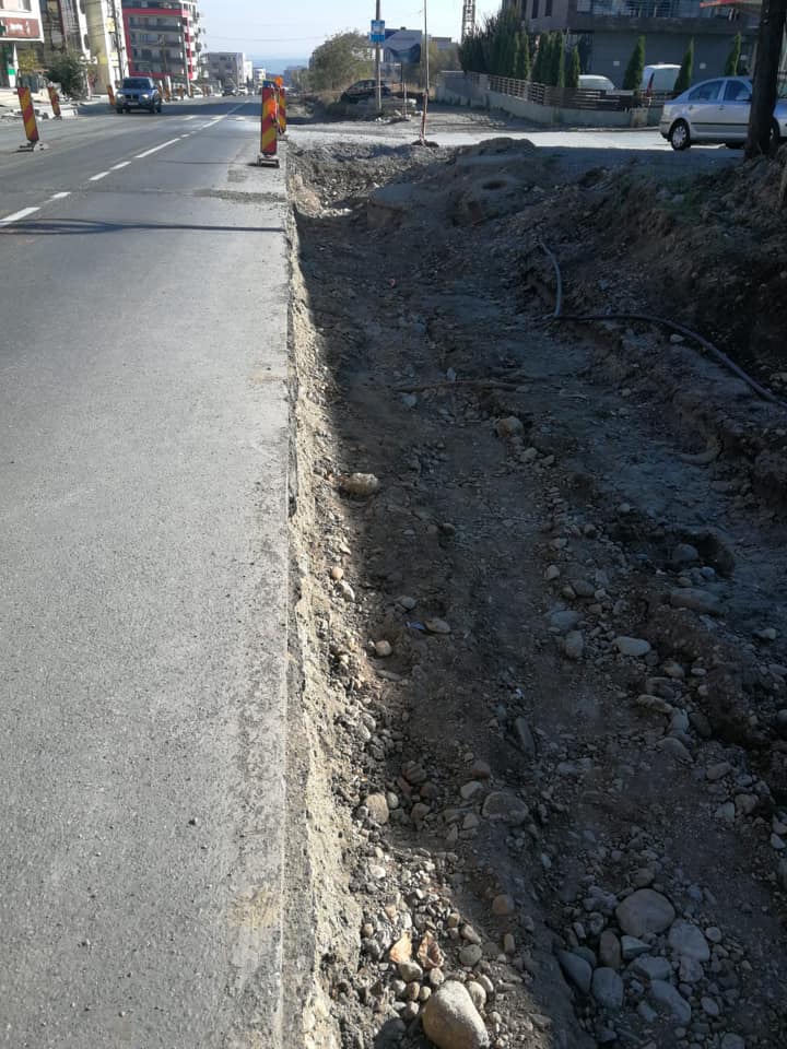 Treceri de pietoni greu de observat si doar partial trasate. Benzile nu sunt semnalizate si delimitate, marginea abrupta a drumului nesemnalizata corespunzator este deosebit de periculoasa, excavator parcat pe drum.