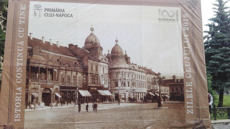 ”În acest an Primăria Cluj-Napoca a amplasat pe latura vestică a pieții Unirii un poster gigant înfățișând reproducerea unei fotografii datate de la începutul secolului XX, reprezentând Palatele Status din municipiu.