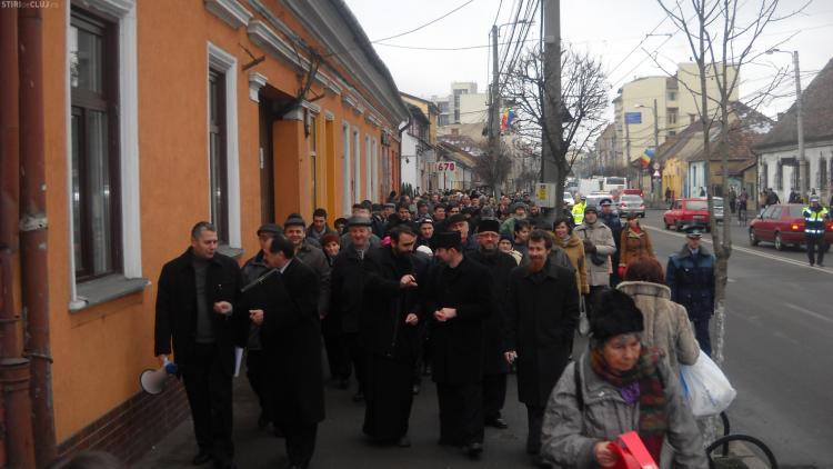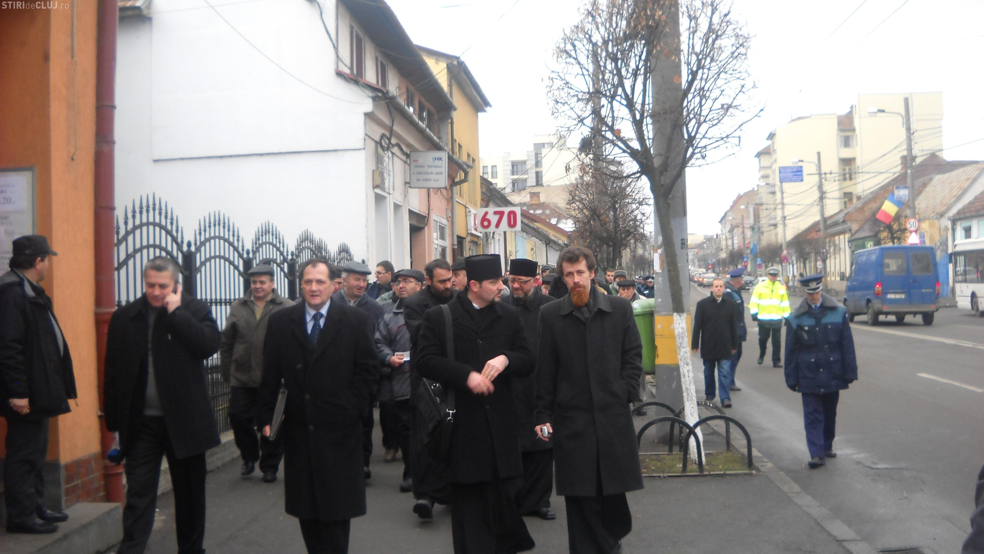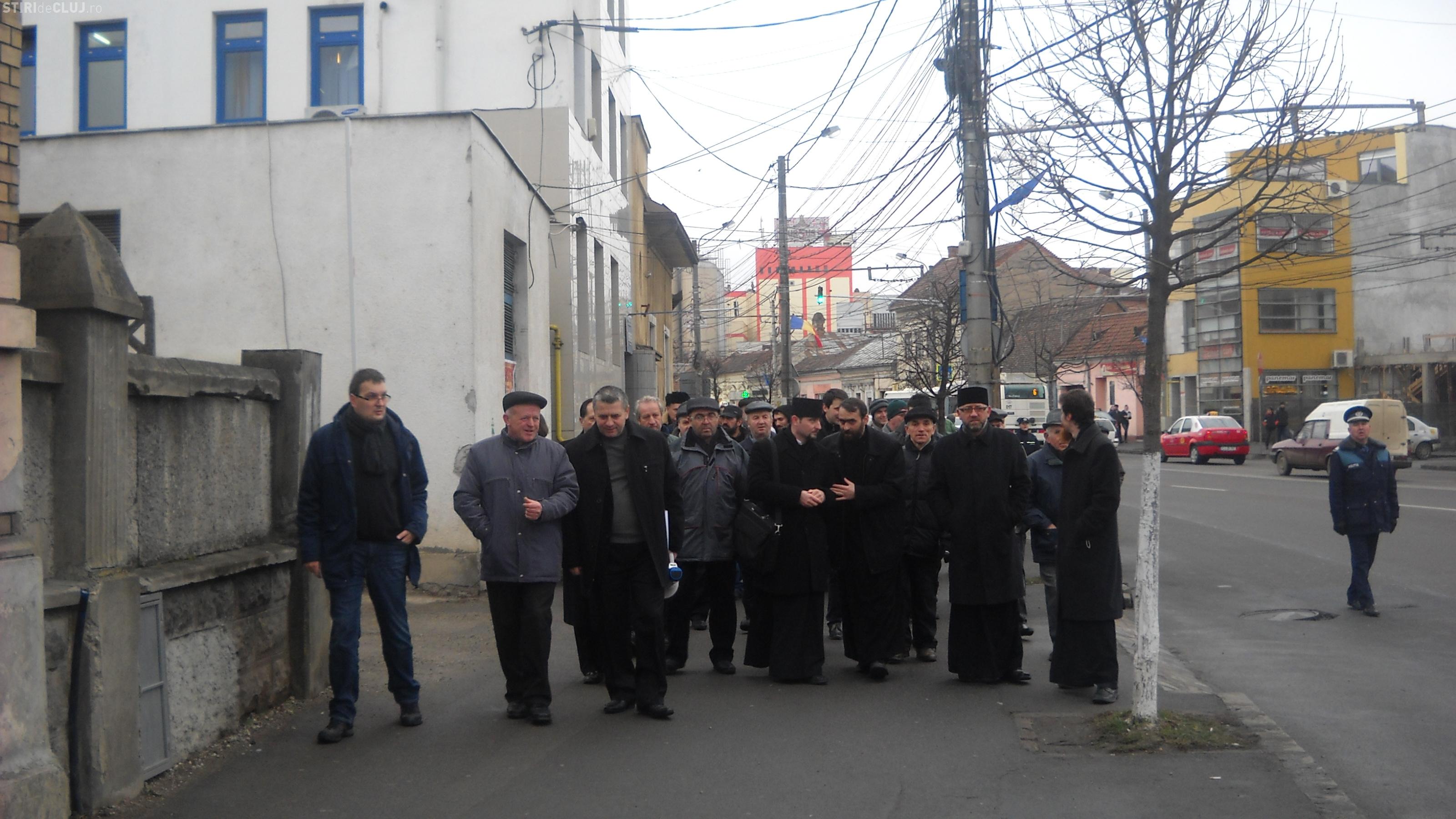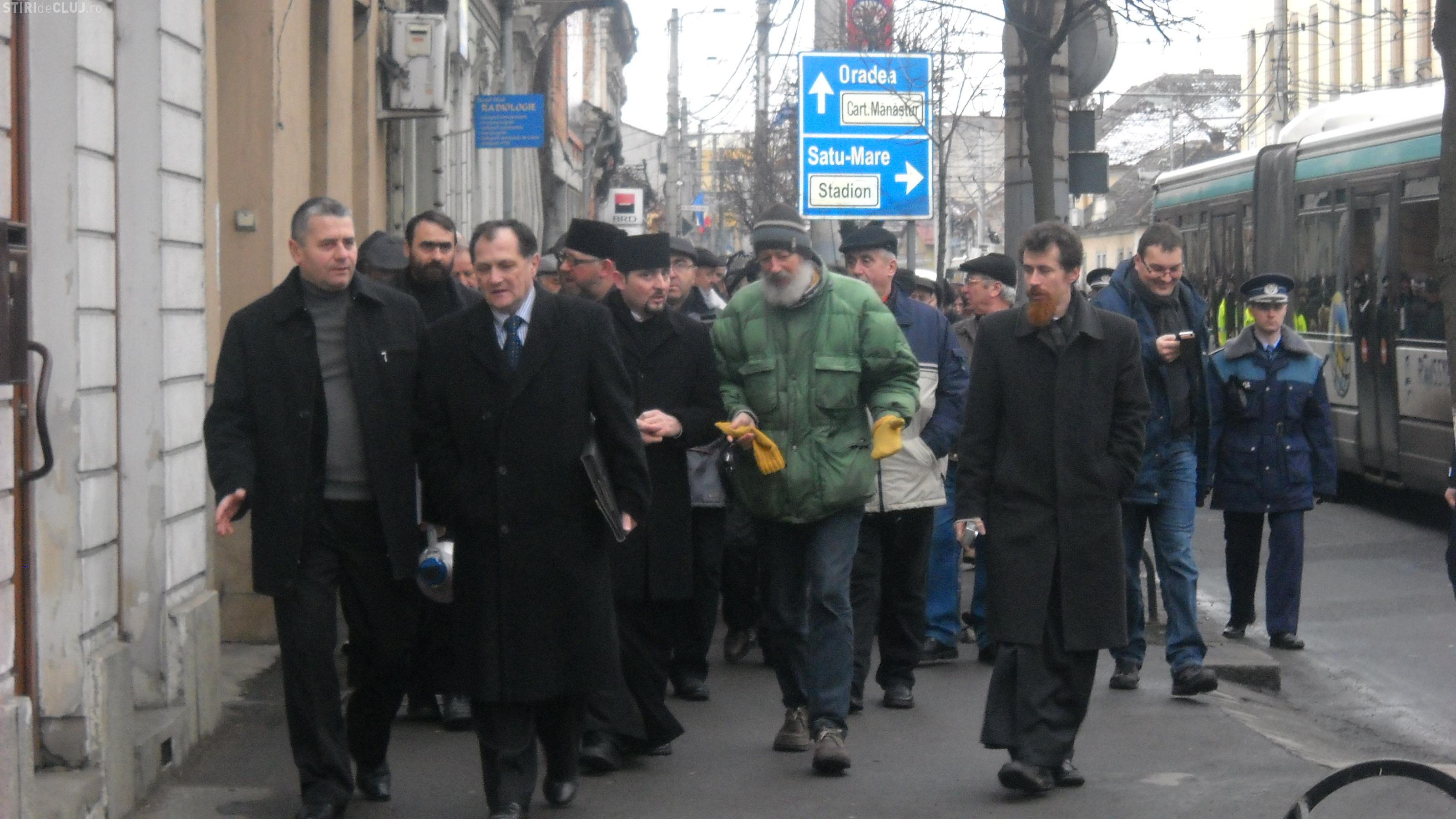 La protest au luat parte si deputatii Mircea Giurgiu si Horea Uioreanu, marsul incepand la ora 12.00 din zona cimitirului si a continuat pe Calea Manastur, strada Motilor, cu oprire la Primaria Cluj-Napoca si apoi grupul a ajuns la Prefectura Cluj. Inainte de a porni spre centrul orasului, protestatarii impreuna cu preotii au spus rugaciunea Tatal Nostru.
