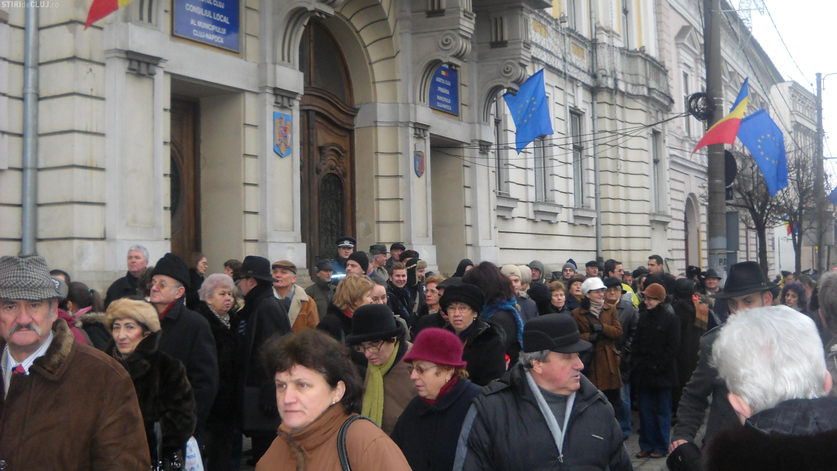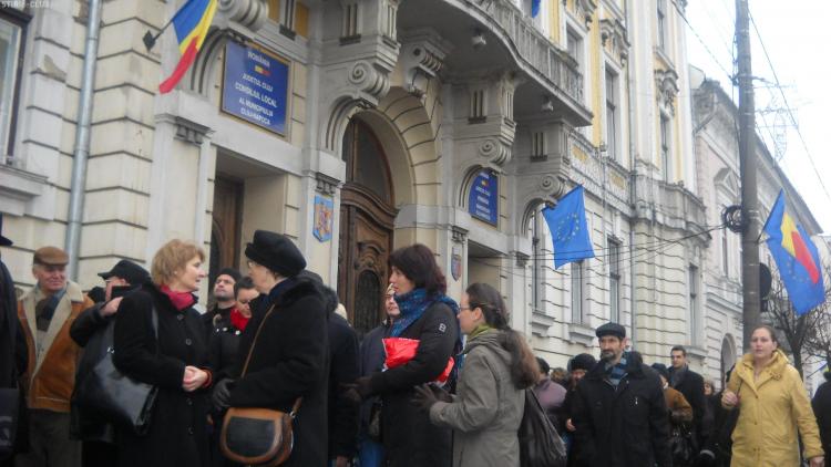 Participantii la mars s-au oprit la Primaria Cluj-Napoca, unde au depus un memoriu semnat de 1.200 de oameni, care se opun construirii crematoriului in cimiirul din Manastur.