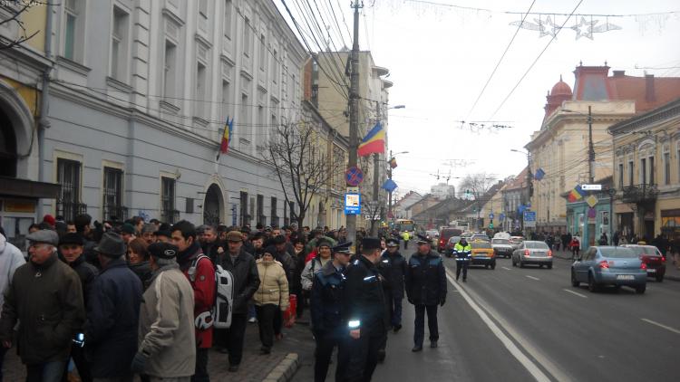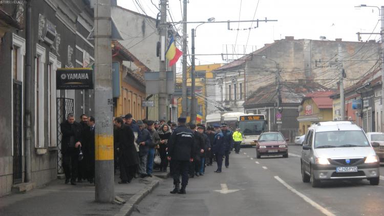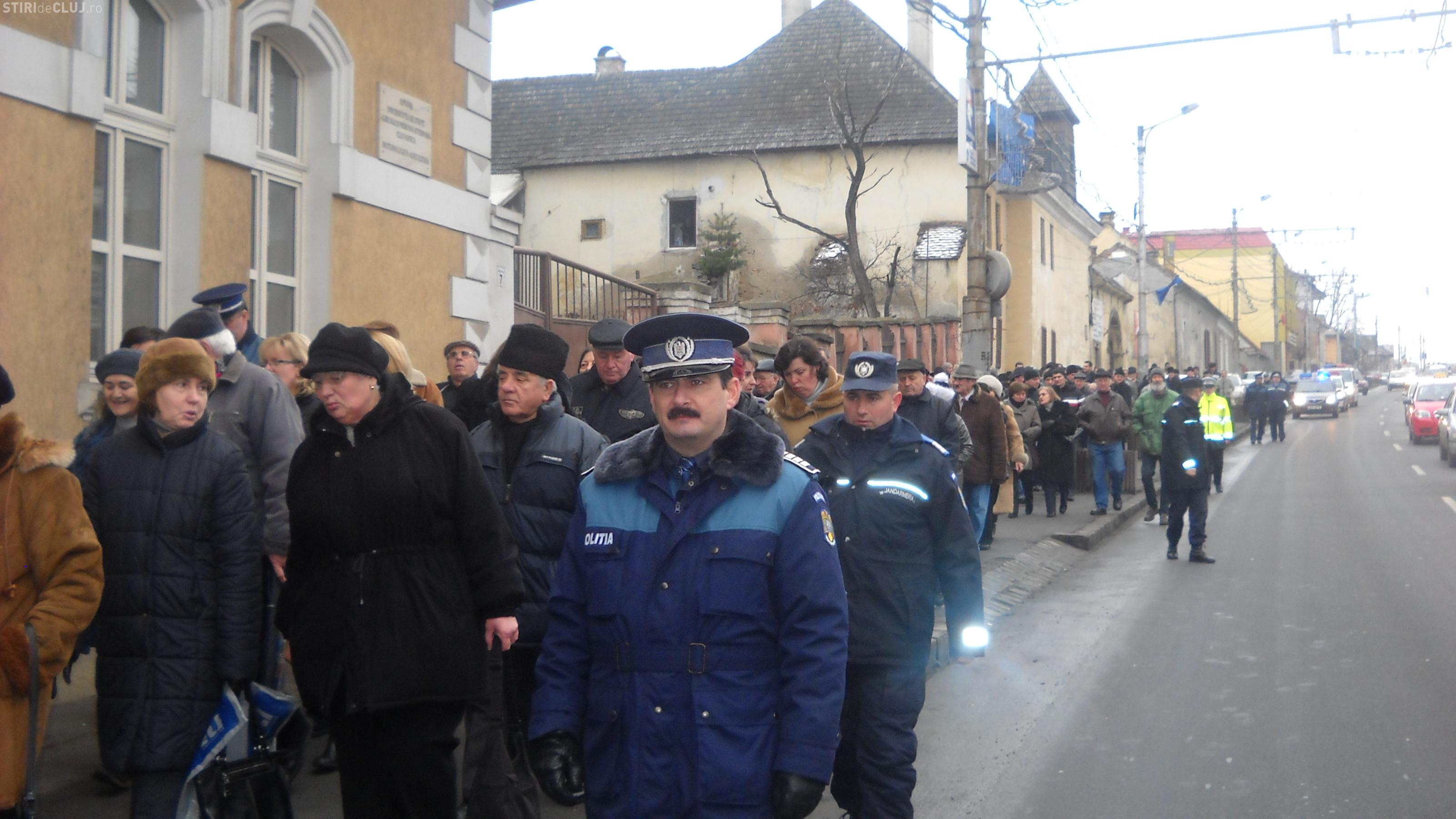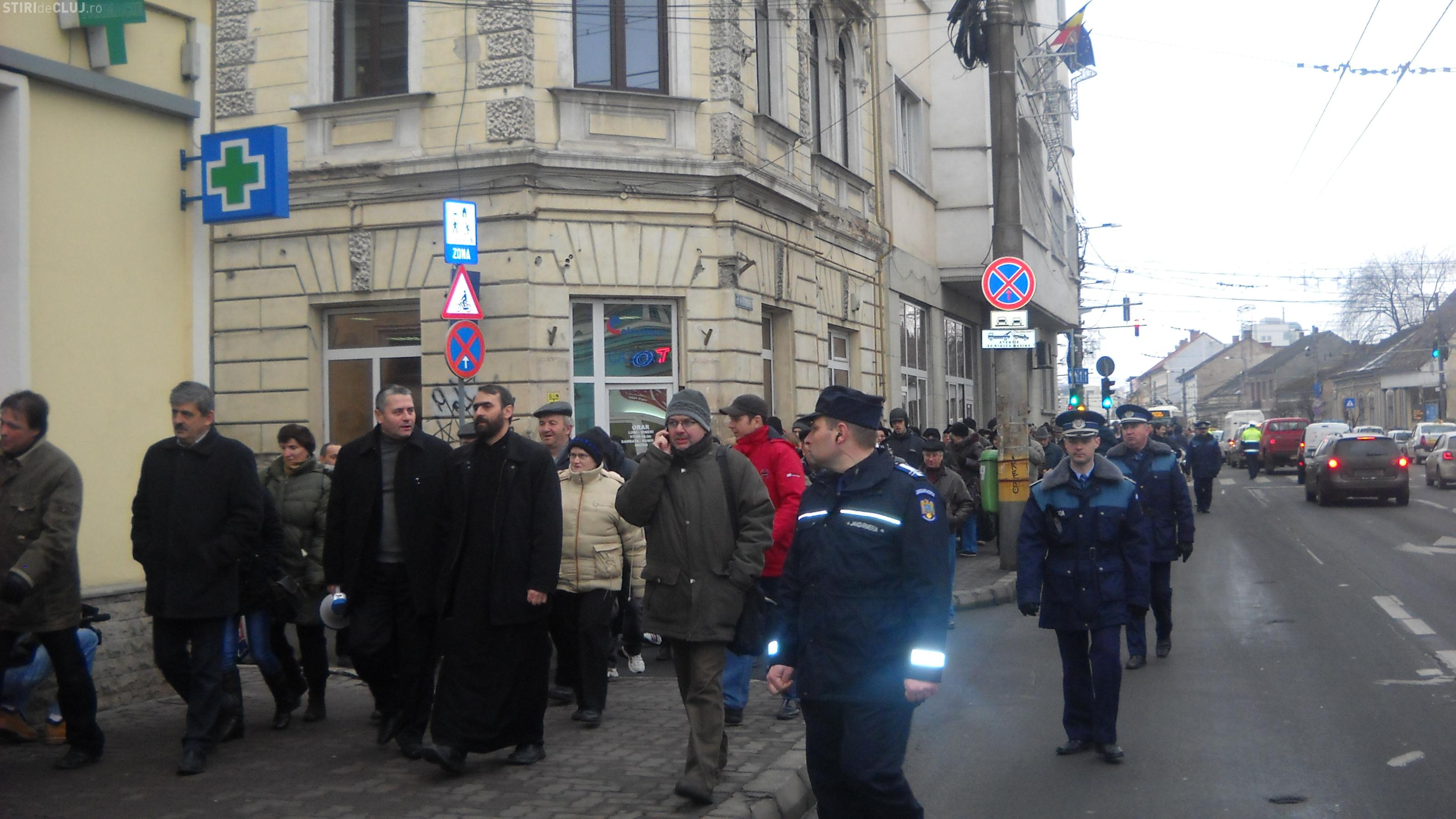 Pe parcursul marsului nu au fost incidente, iar pe tot traseul de deplasare de la cimitirul din Manastur si pana la Prefectura Cluj a fost inchisa o banda de circulatie