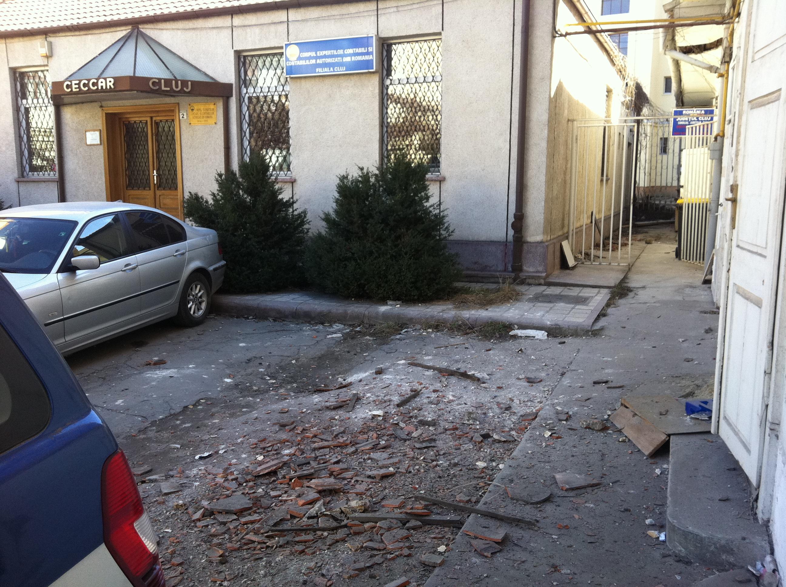 Mașina aparține consilierului local PSD Cluj, Gabriel Oniga. După acest incident, Oniga a solicitat Primăriei Cluj-Napoca să fie alocate fonduri pentru renovarea clădirilor din zona centrală. ”Trebuie găsite fonduri pentru reabilitarea clădirilor din zona centrală. Vă mărturisesc faptul că am întârziat la dezbaterea pentru bugetul Clujului pentru că pe mașina mea au căzut bucăți dintr-un tavan. Trebuie să facem ceva”, a spus Oniga, deranjat de faptul că primarul Emil Boc i-a replicat faptul că acea clădire este utilizată de PSD și PNL.