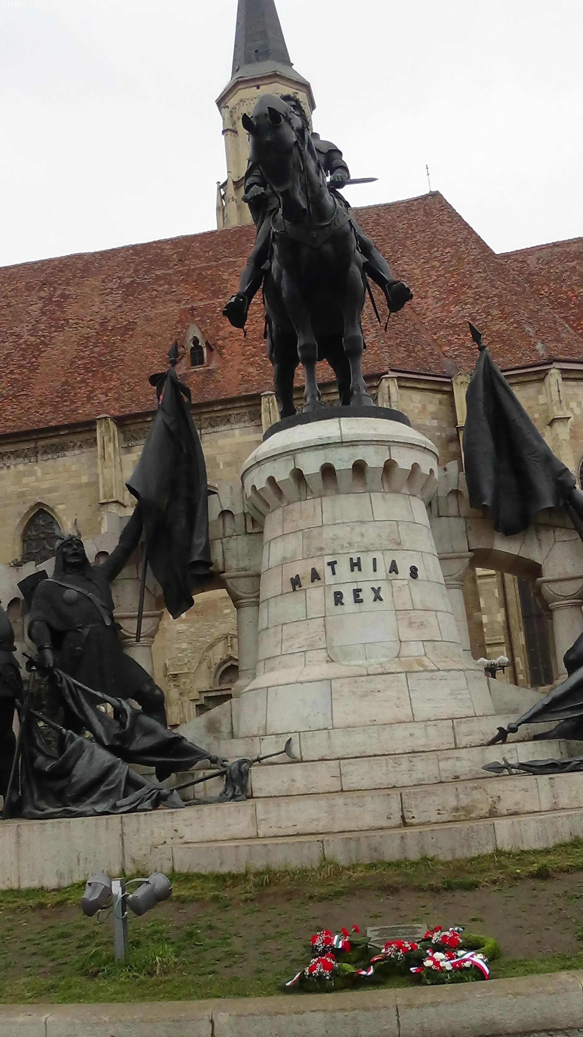 La statuia lui Matei Corvin, din Piața Unirii, au fost depuse coroane de flori și din partea UDMR Cluj, dar și din partea Consulatului Ungariei.