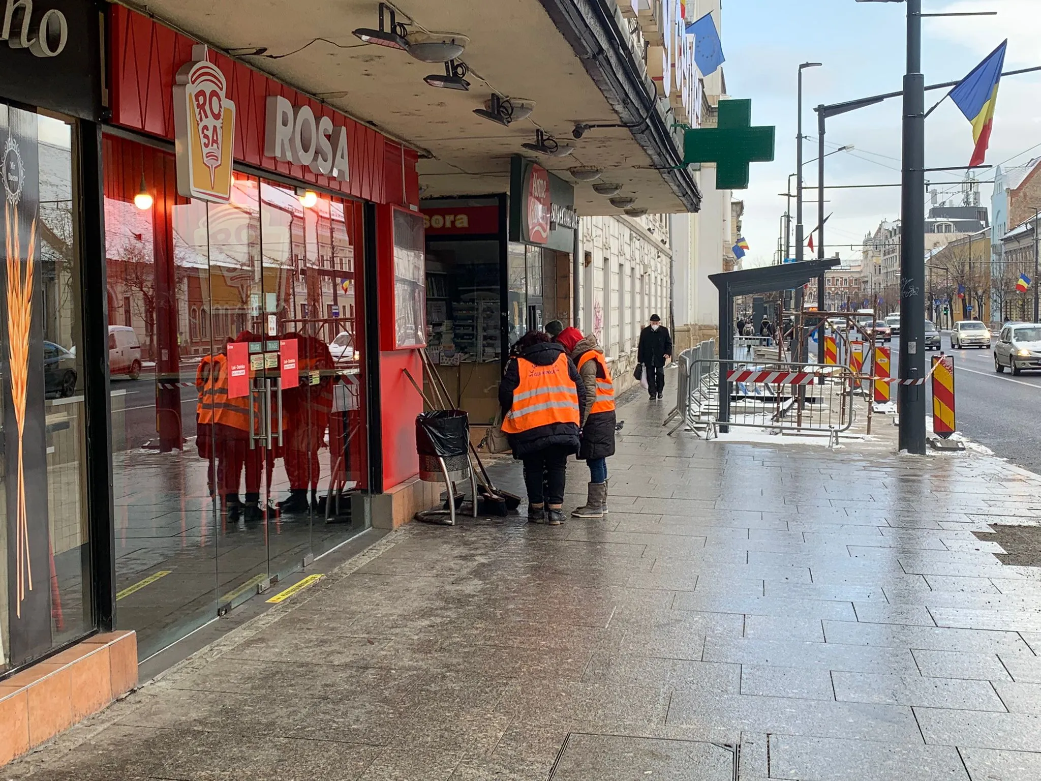 Deocamdată lucrările s-au oprit, dar mai trebuie amplasată încă o structură din stația de autobuz.