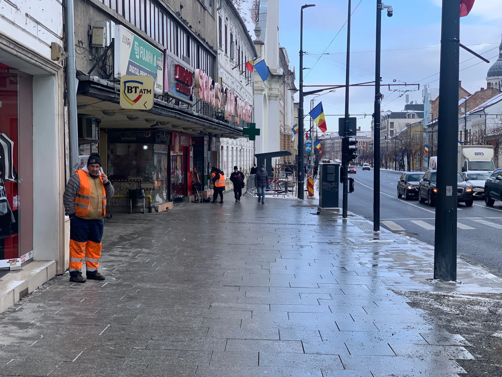 Conducerea liceului spune că din poarta liceului și până la stație a rămas un metru de trotuar. Reporterul Știri de Cluj a verificat și pe trotuarul rămas abia dacă este loc să treacă două persoane.