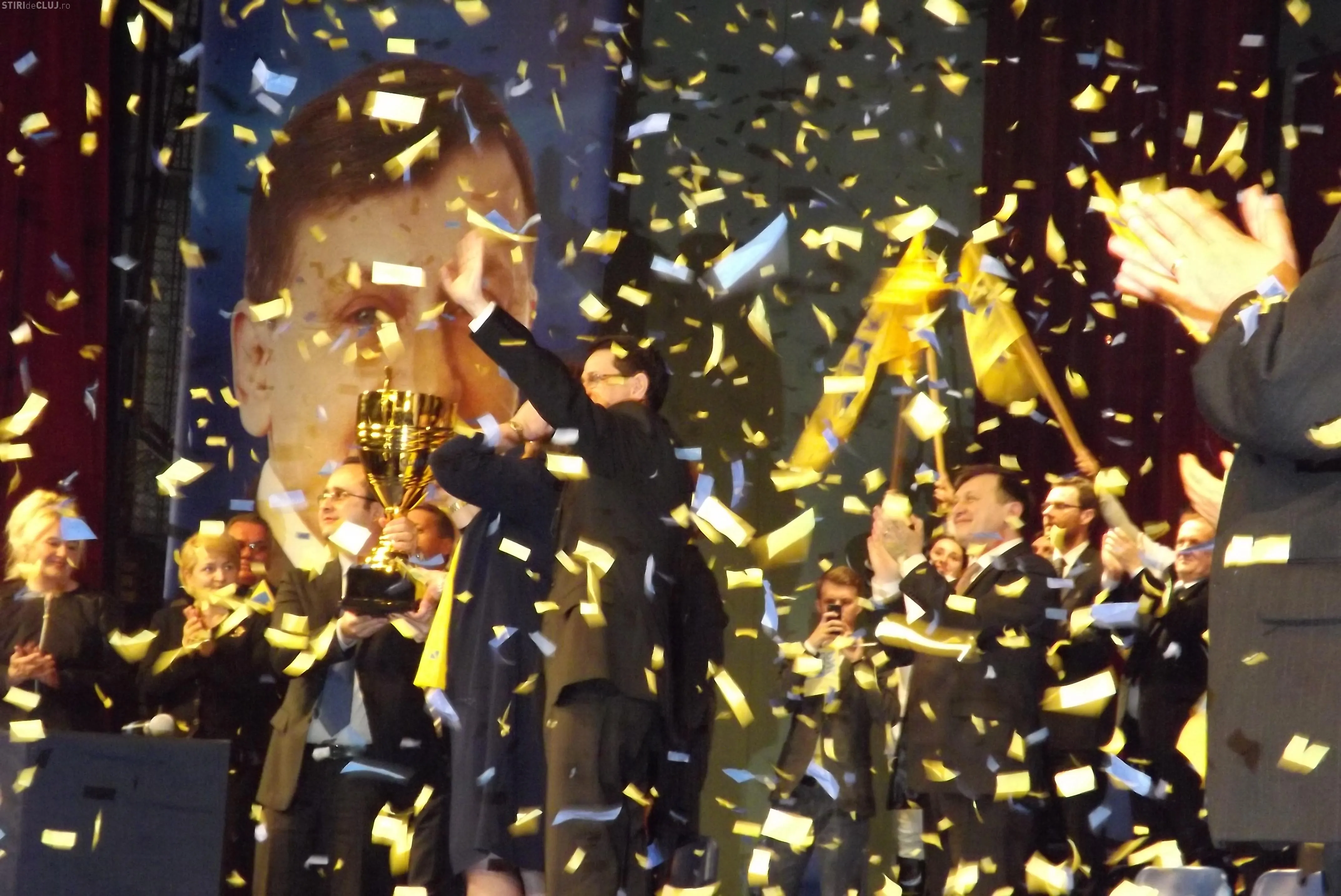 Norica Nicolai, candidatul PNL pentru regiunea de Nord-Vest la europarlamentare, a primit o cupă similară celei din Champions League.