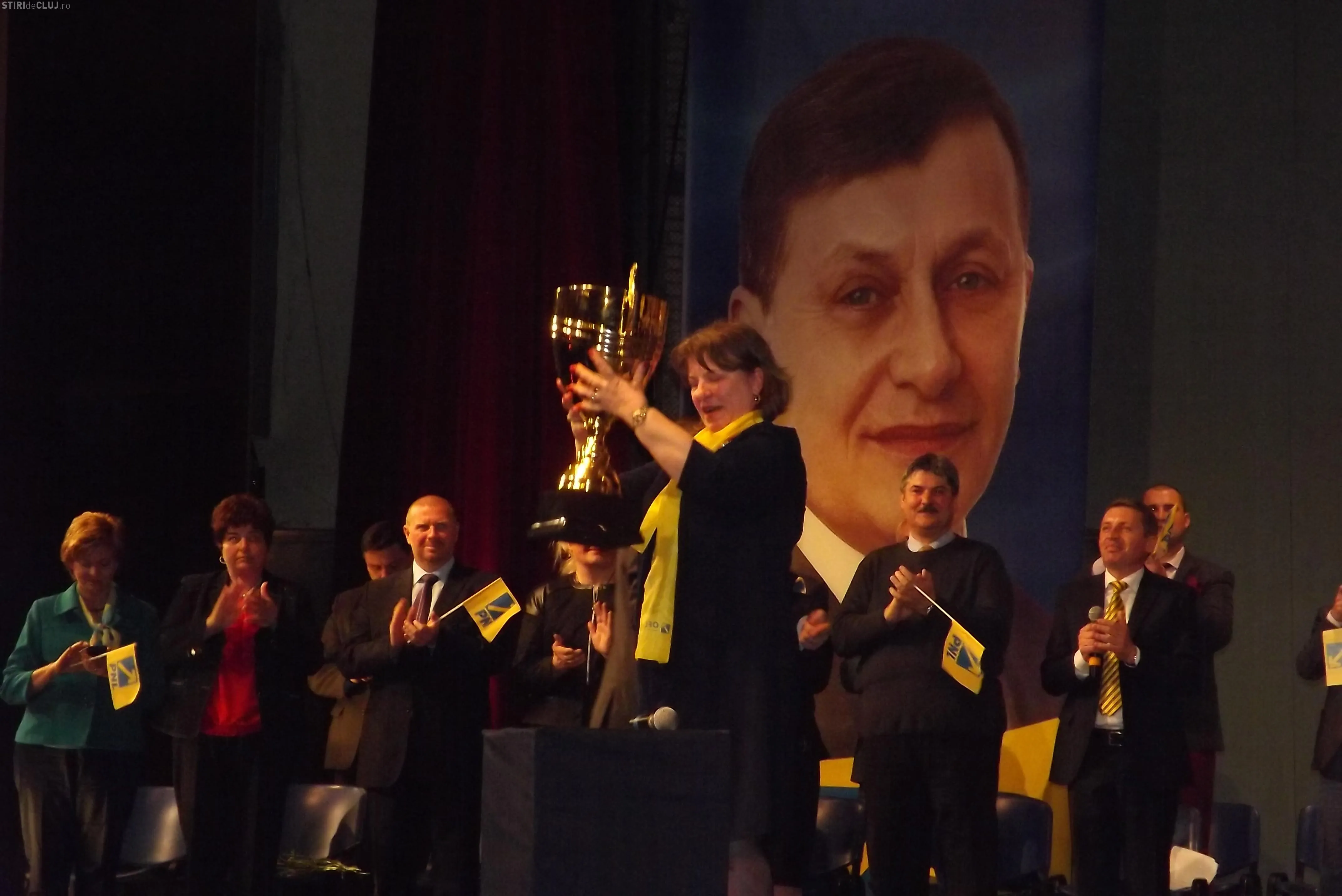 Norica Nicolai, candidatul PNL la europarlametare, a primit la Cluj o cupă gen Champions League - FOTO