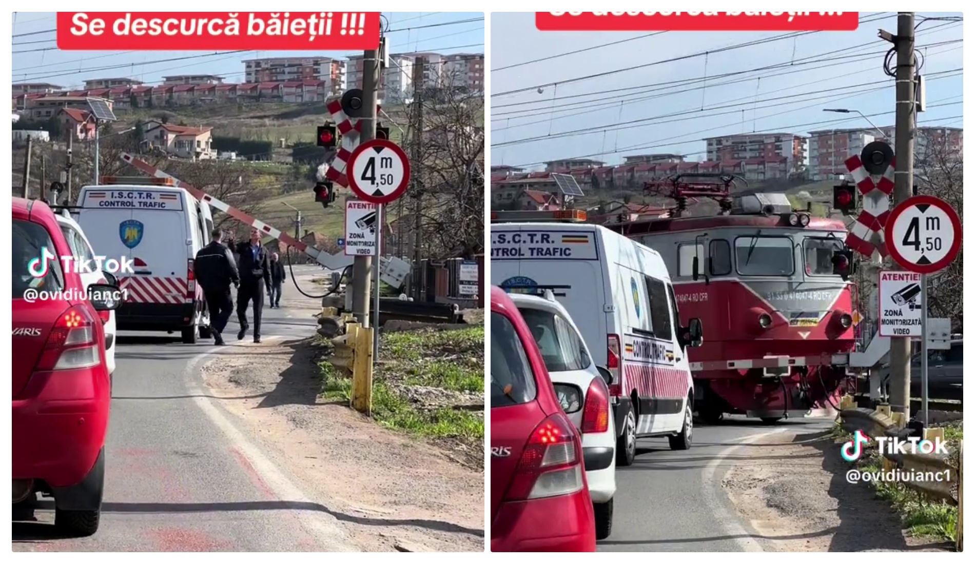 Un martor a filmat mașina rămasă blocată sub barieră, iar inspectorii s-au dat jos pentru a vedea ce e de făcut. Aceștia au ridicat bariera cu mâna și au reușit să mute mașina pentru a nu fi lovită de tren.