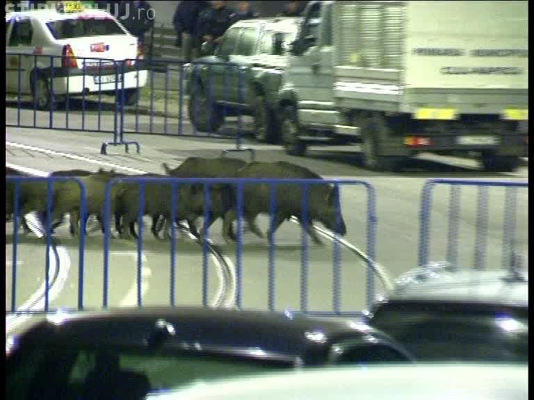 Porci mistreți, în Mănăștur la Biserica de la Calvaria - VIDEO cu mistreții traversând strada