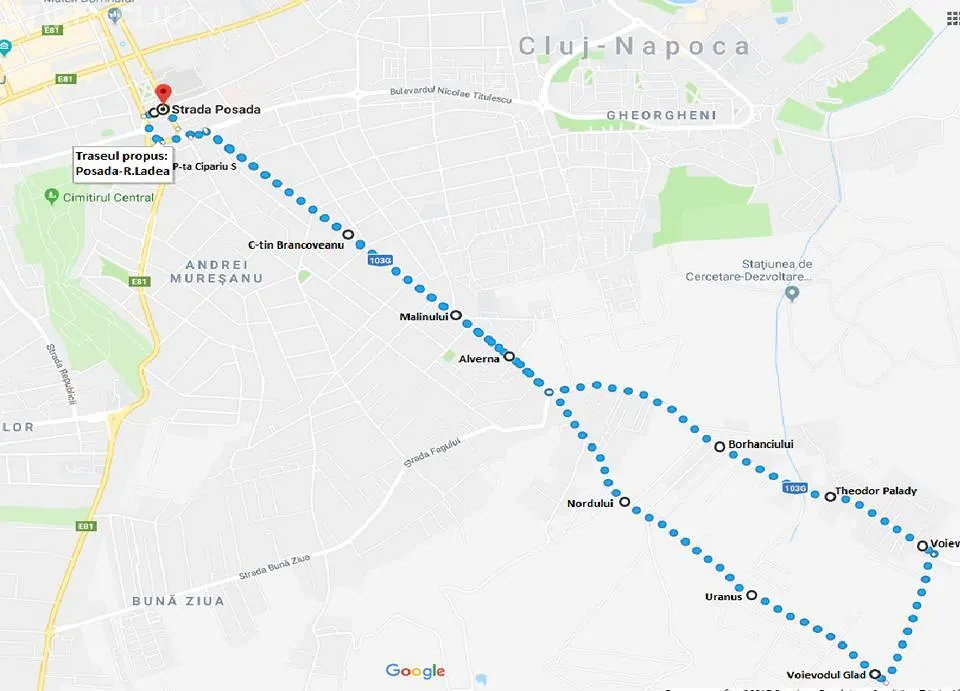 - Dus: Posada - Pța Cipariu - C-tin Brâncoveanu V - Mălinului V - Alverna V- Nordului - Uranus - Voievodul Glad - Voievodul Gelu E;