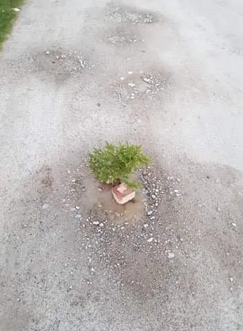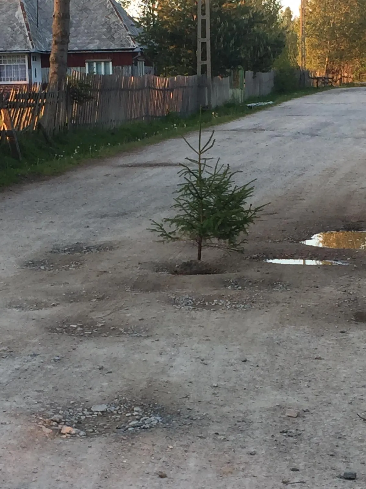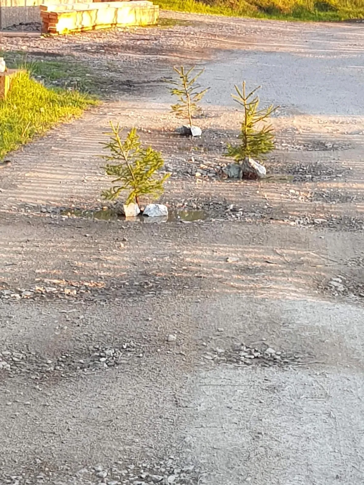 ”Pe cei de la Primărie nu îi interesează situația drumului. Brăduții au fost plantați de localnici în semn de protest”, ne-a relatat un localnic.