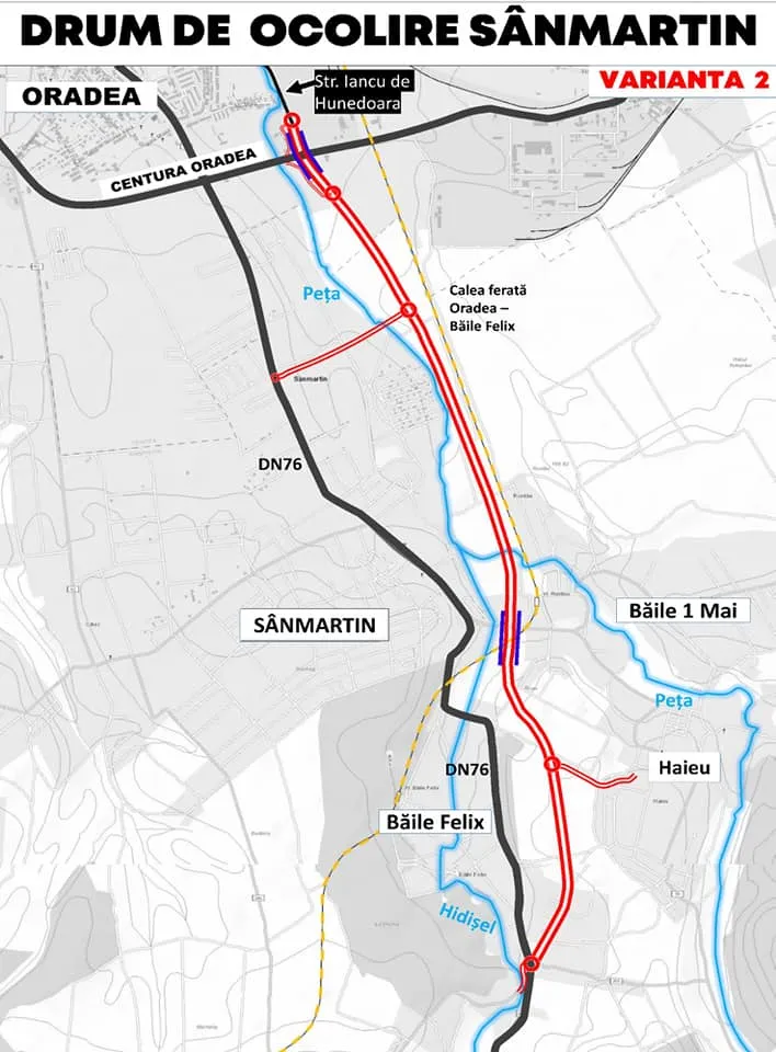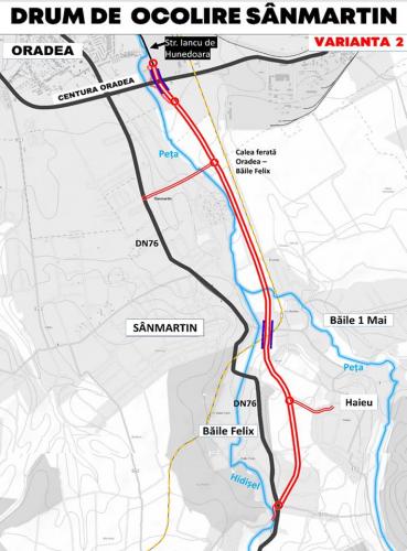 Se analizează două trasee, unul scurt - varianta 1, ce ocolește doar localitatea Sînmartin, și unul mai lung - varianta 2, de 5,7 km, ce ocolește și stațiunea Băile Felix.