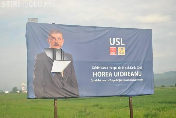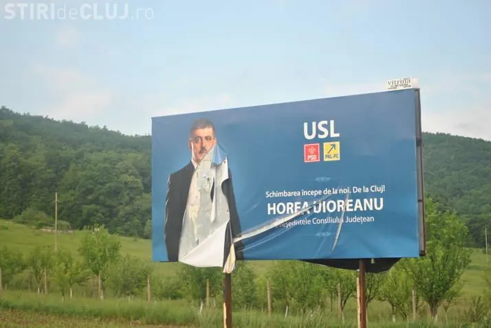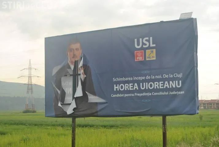 Candidatul USL la Consiliul Judetean Cluj, Horea Uioreanu, a depus plangere la Politie, dupa ce panourile sale electorale au fost vandalizate.