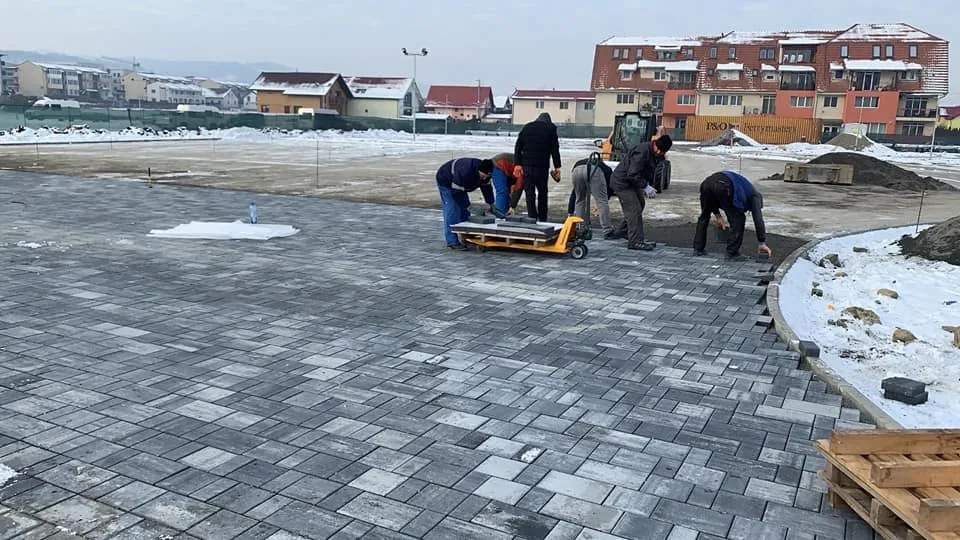 Muncitorii lucrează la Parcul din Florești, de pe strada Tăuțiului, chiar și în week-end pentru a termina lucrarea cât mai repede.