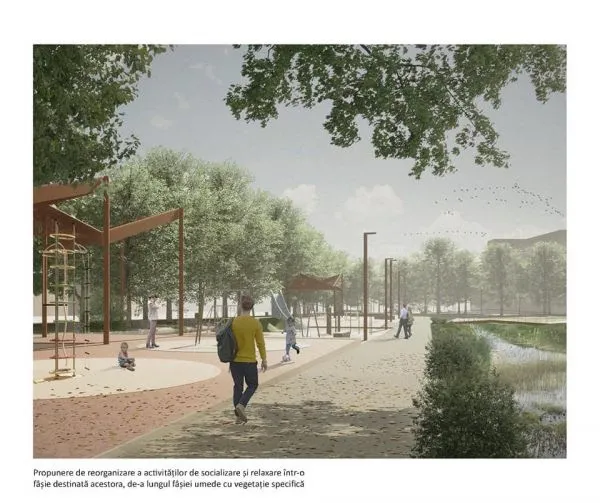 - stabilirea și reorganizarea unor zone funcționale precise: locuri de joacă, locuri pentru practicarea exercițiilor fizice și activități sportive etc. La aceste funcțiuni existente se adaugă un amfiteatru în aer liber, o grădină pluvială și două pajiști urbane pentru recreere.