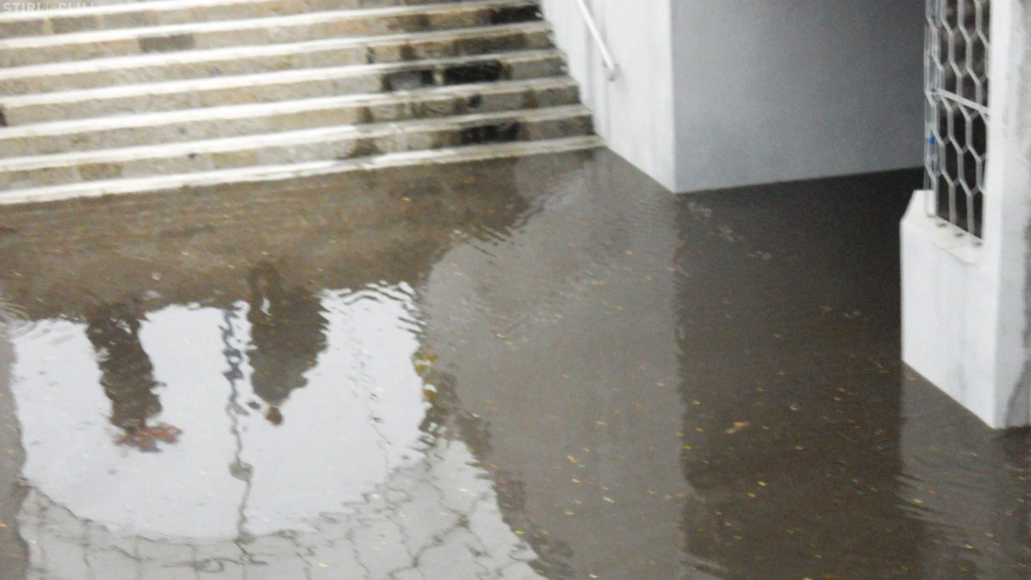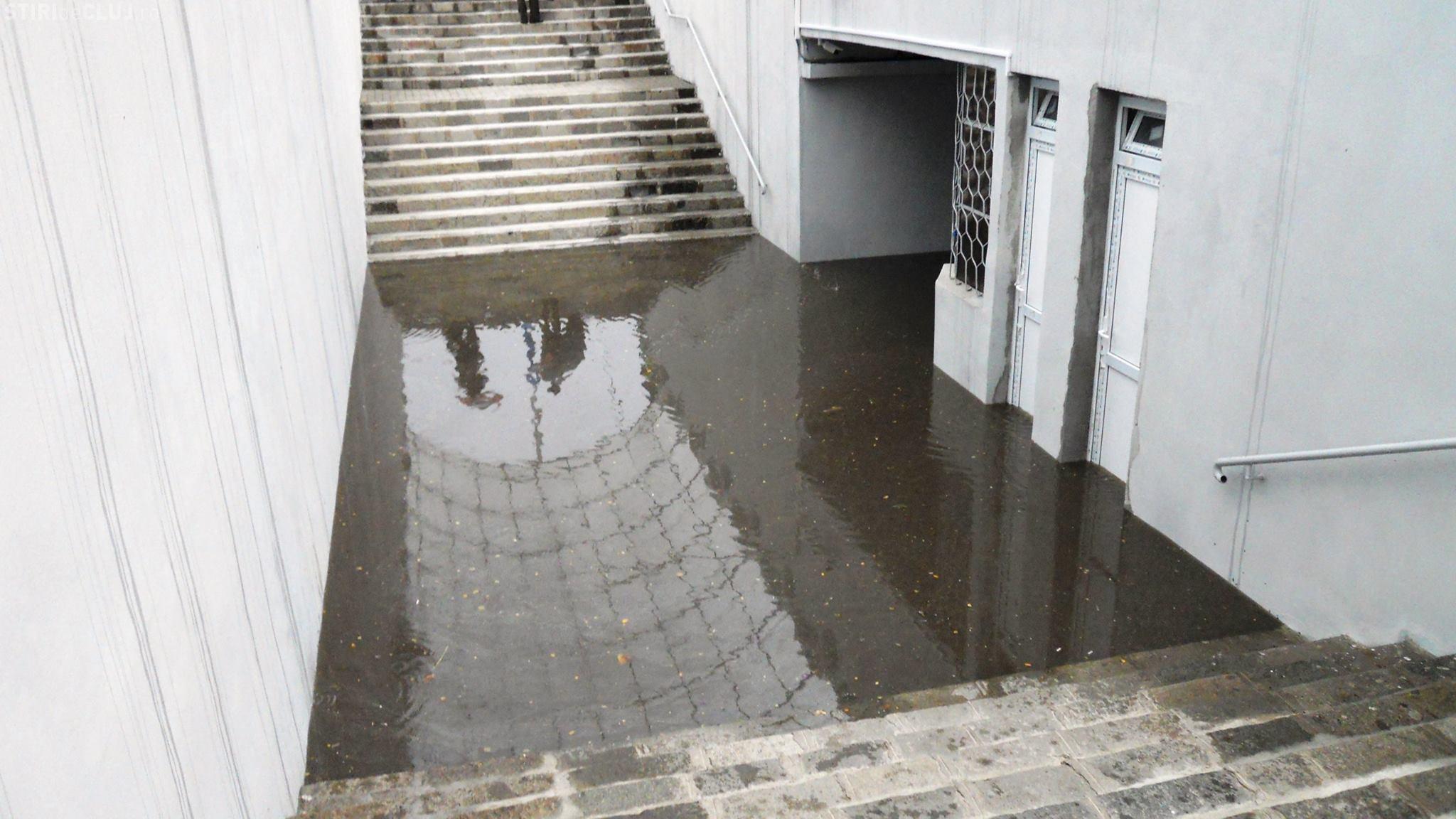 ”Azi, orele 7.18, pasajul inferior pietonal de pe Calea Floresti, Flora. Nou renovat, dat in ”functiune” saptamana trecuta. Degeaba, totusi apa e cel mai ”bun” inginer....”, a scris pe Facebook un clujean.