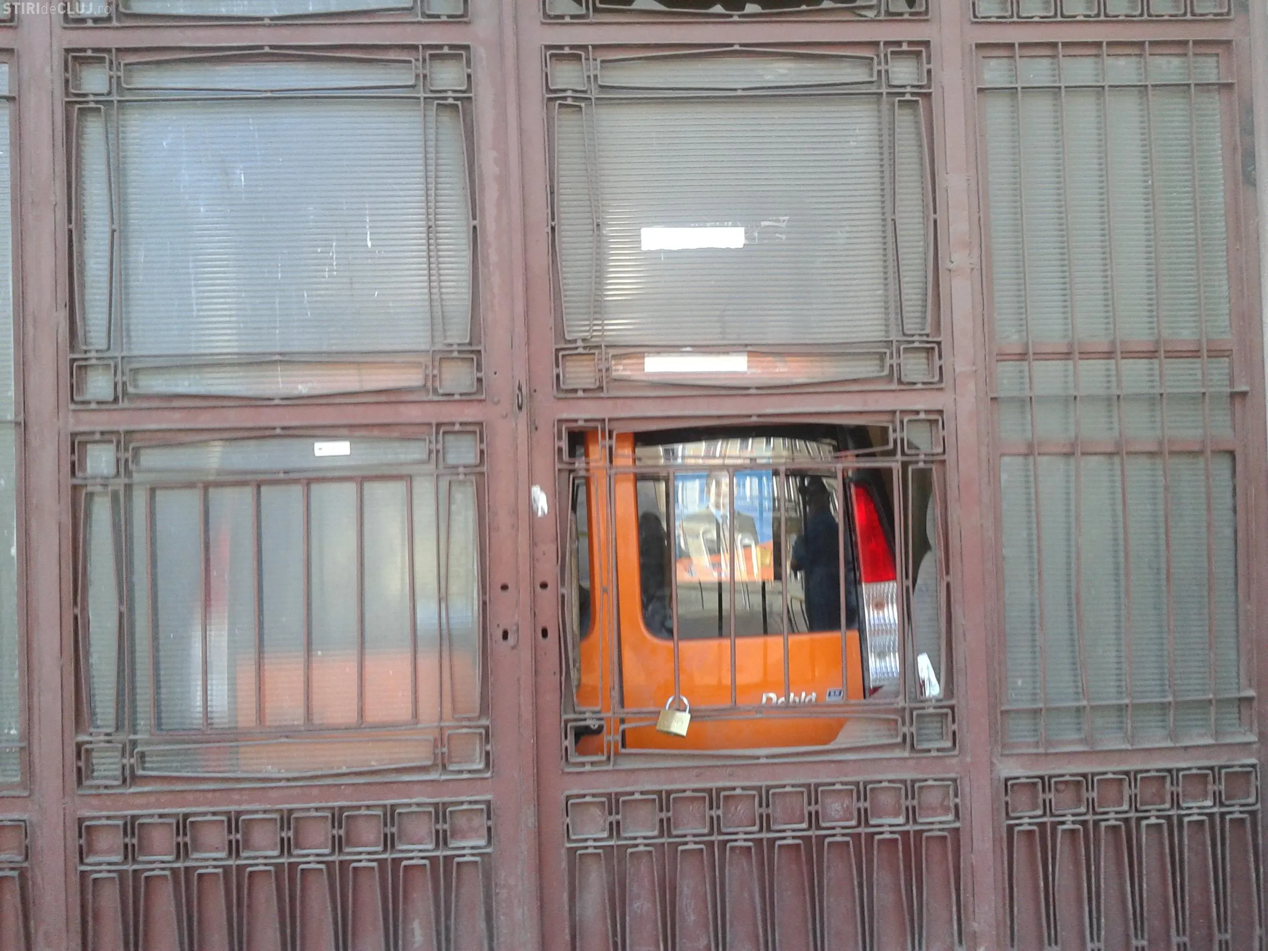 "Curtea este blocata pe interior de o masina a Partidului Democrat Liberal (PDL) Cluj. Pe partea exterioara este pus lacatul. De obcei usa aceasta este deschisa la aceasta ora (n.r 08:34). Seara se inchide, dar dimineata o deschide portatul. Acum nu este nimeni sa deschida usa, dar pe langa asta masina de campania a PDL blocheaza usile. Curtea nu este un domeniu privat, iar asa ceva nu s-a mai intampla nicioadata.