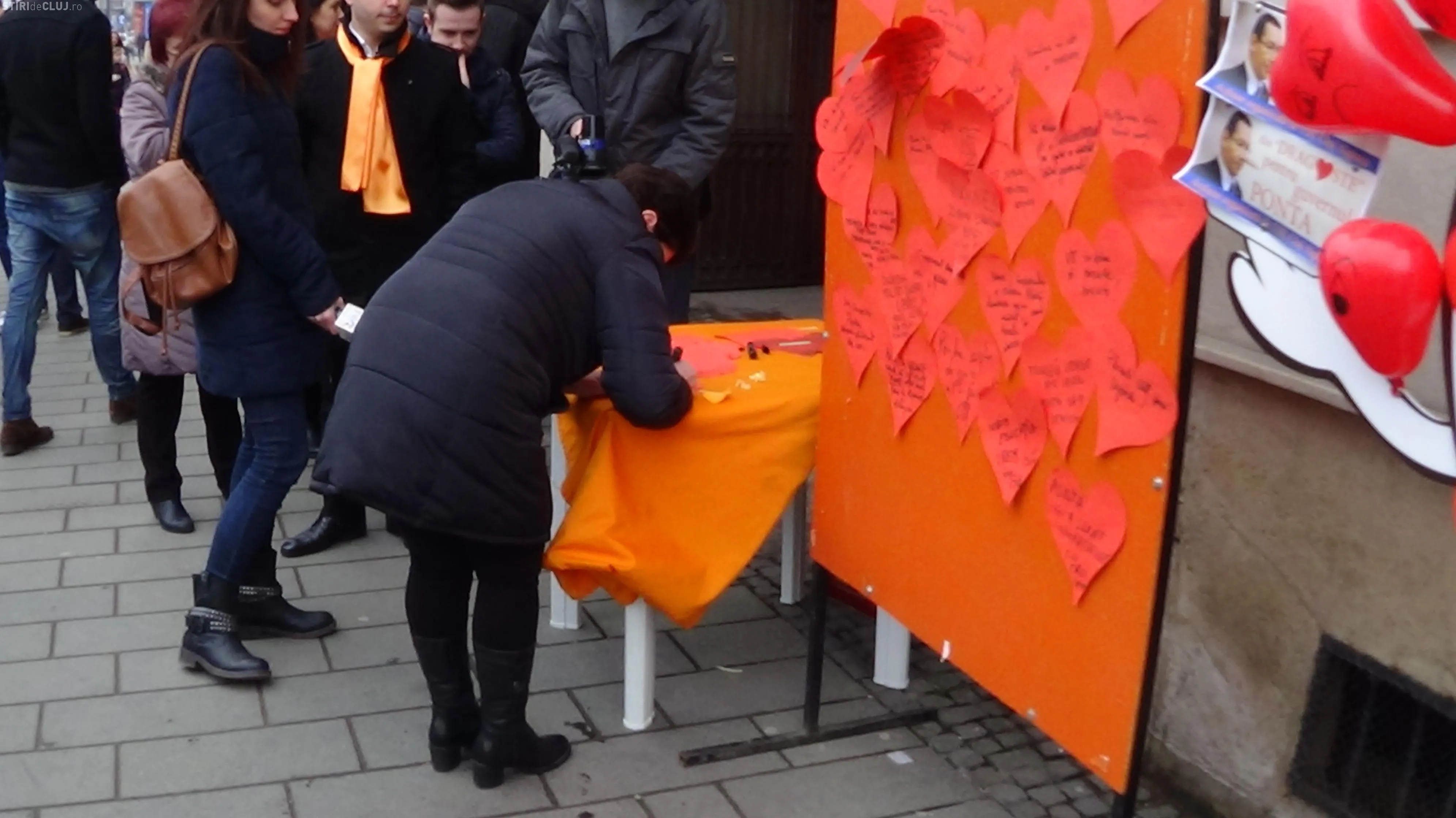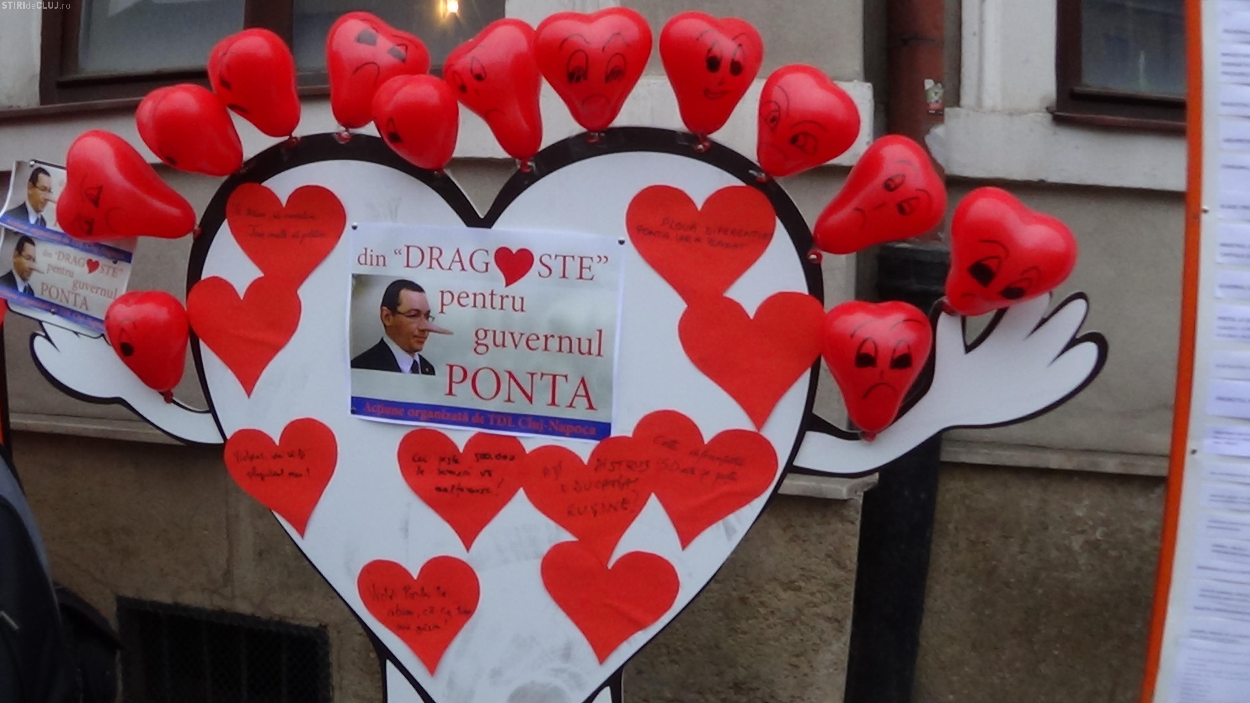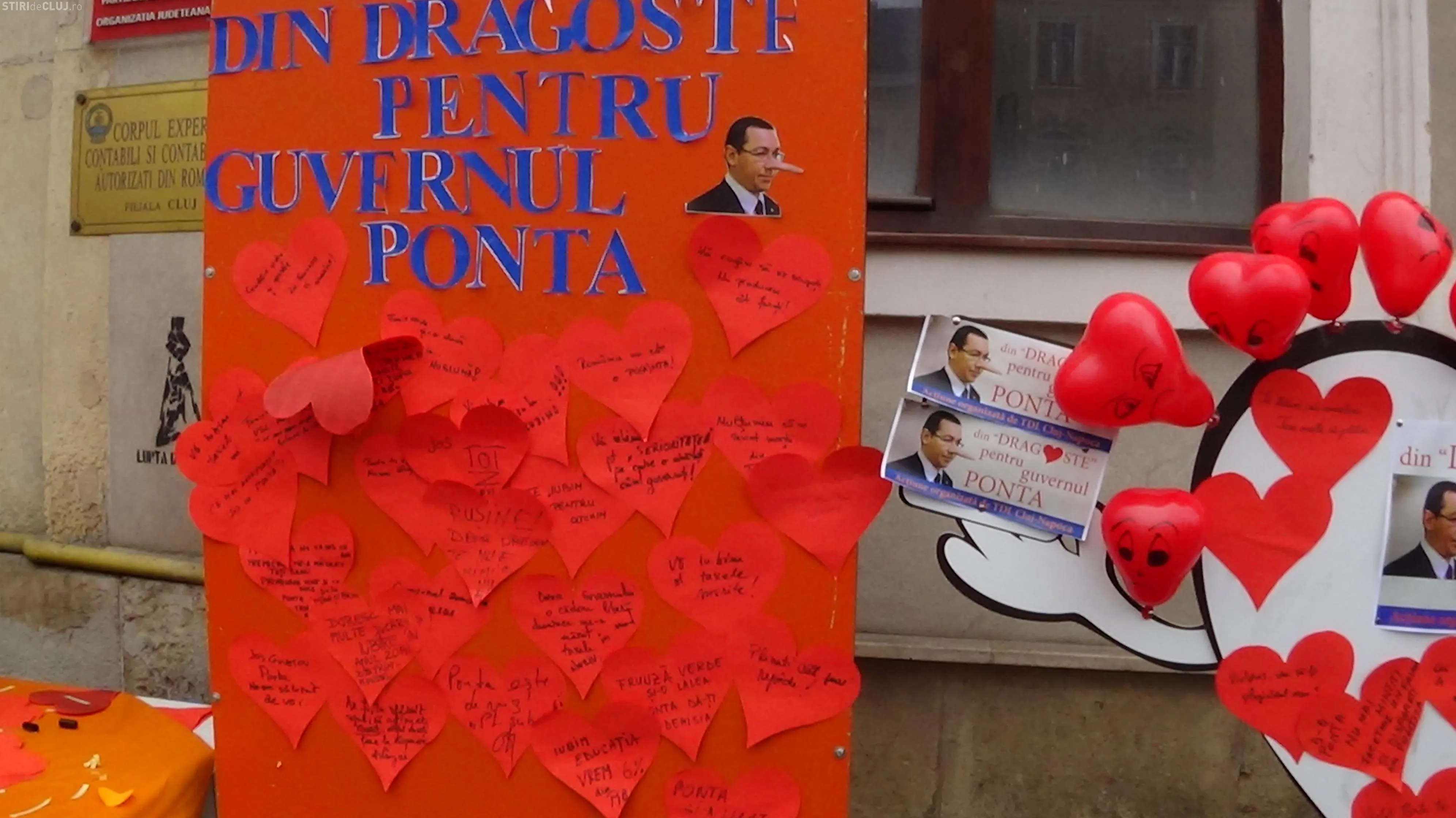 Membrii PDL Cluj au organizat o acțiune, cu ocazia Zilei Îndrăgostiților, pentru a strânge declarații de ”dragoste” din partea clujenilor pentru premierul Victor Ponta și actualul guvern.