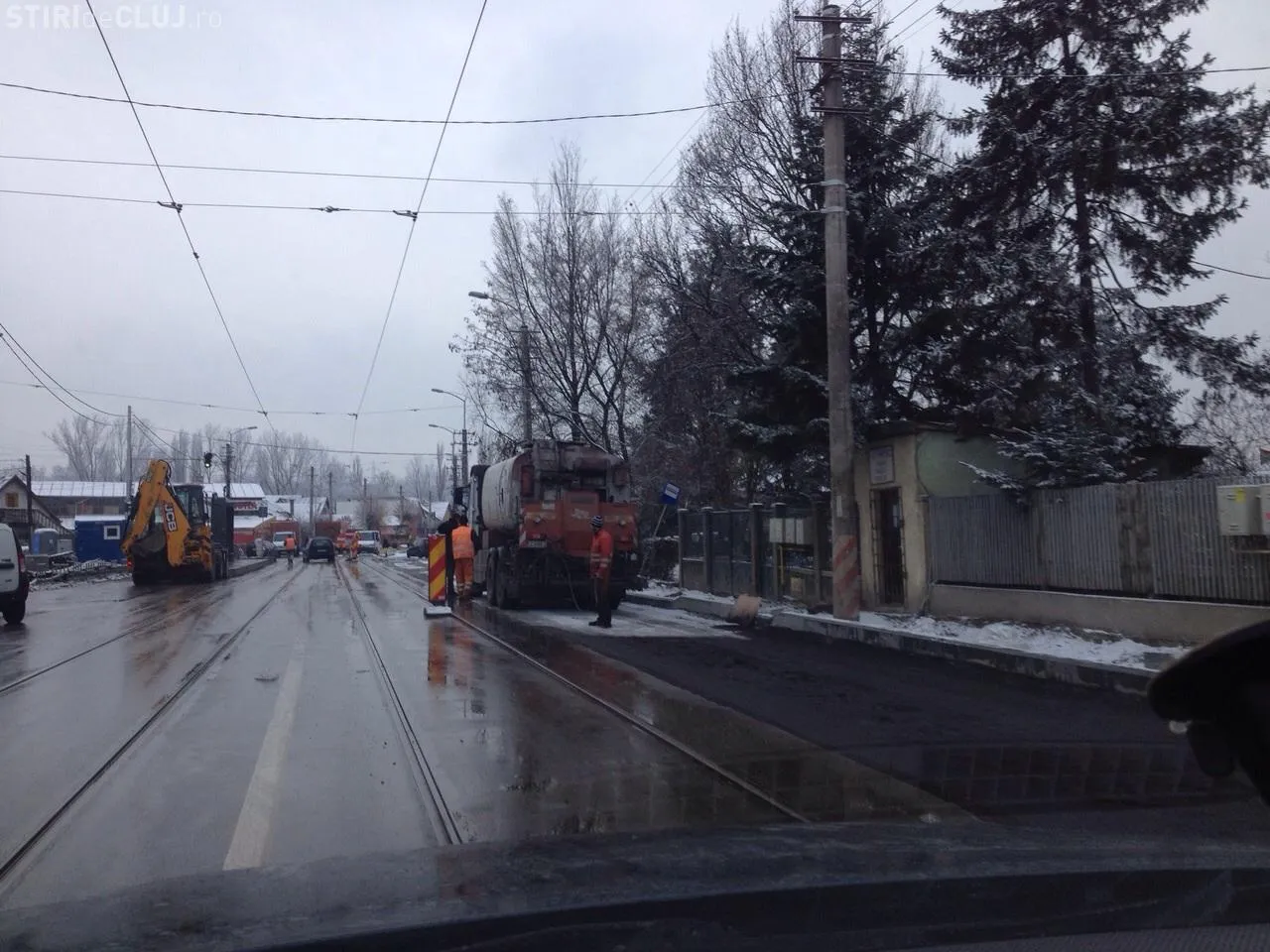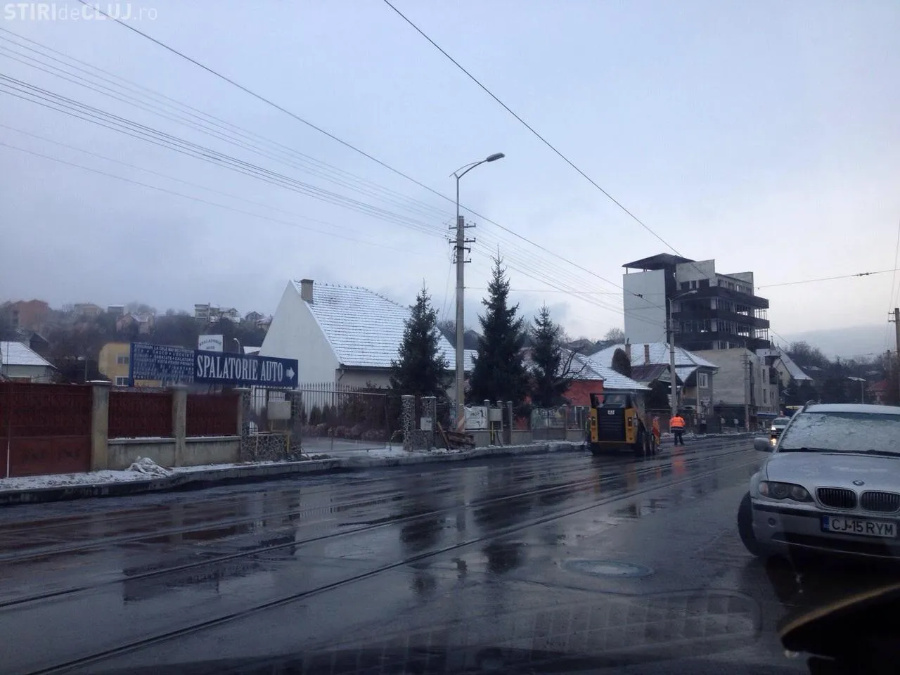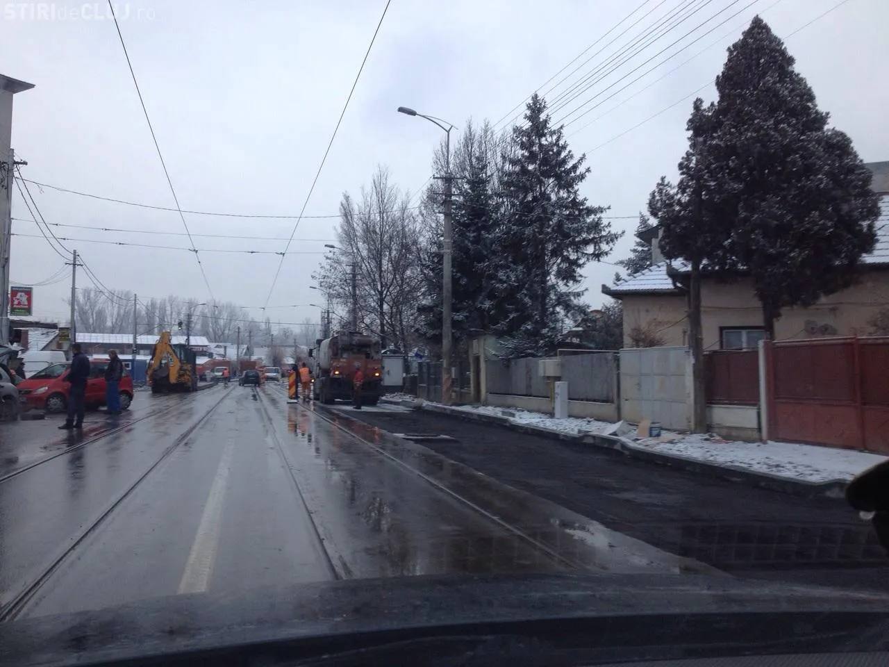 Pe strada Oașului se toarnă asfalt pe ninsoare - FOTO