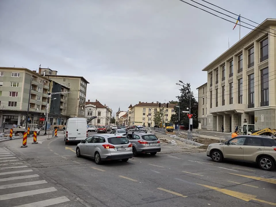 Lucrările de refacere a Pieței Lucian Blaga (n.red. Piața Păcii) ar trebui terminate în 30 noiembrie, dar deja firma a avut unele întârzieri.