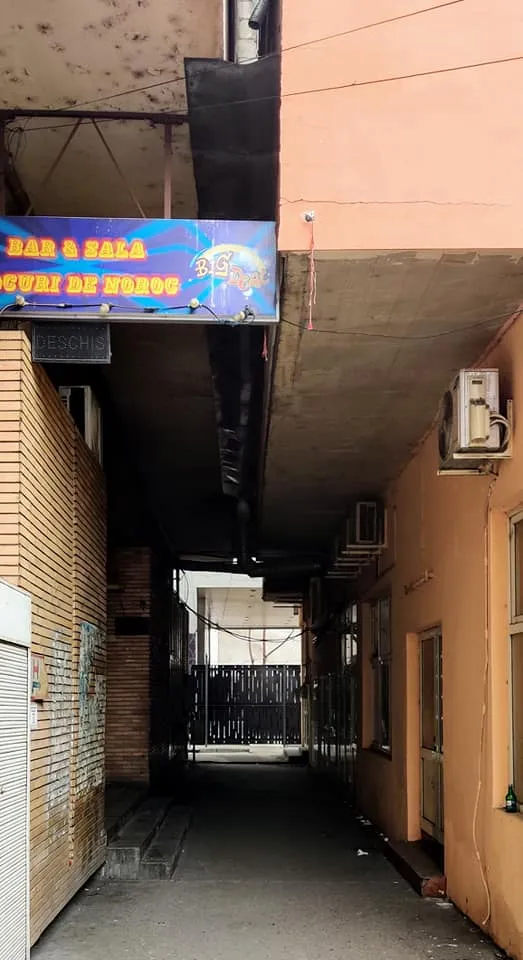 Pe de o parte gardul blochează trecerea prin gang, iar hotelul pe trotuar.