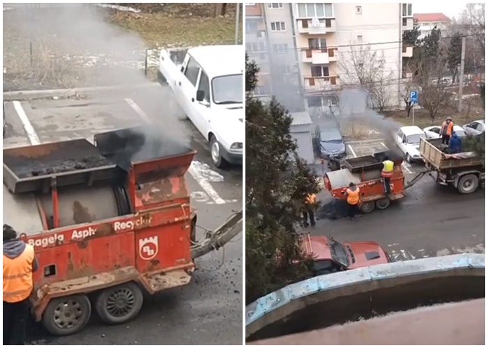 ”Așa se face o asfaltare pe strada Jupiter miercuri, 2 februarie 2022. Au împuțit cu fumul tot Zorilor Sud”, ne-a relatat un clujean.