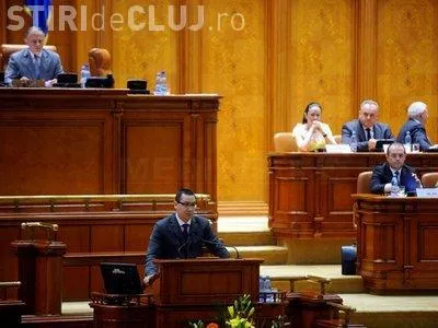 Victor Ponta, presedintele PSD, a luat cuvantul in plenul reunit al Parlamentului la votarea motiunii de cenzura pe Codul Muncii si l-a facut pe Emil Boc papagal, pentru repeta intruna ca Romania a iesit din criza.