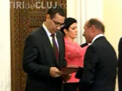 Preşedintele Traian Băsescu i-a înmânat lui Victor Ponta un dosar roşu, luni, la Cotroceni, la finalul ceremoniei de depunere a jurământului de învestitură de către noul ministru al Educaţiei, şeful statului şi premierul purtând apoi o scurtă discuţie.