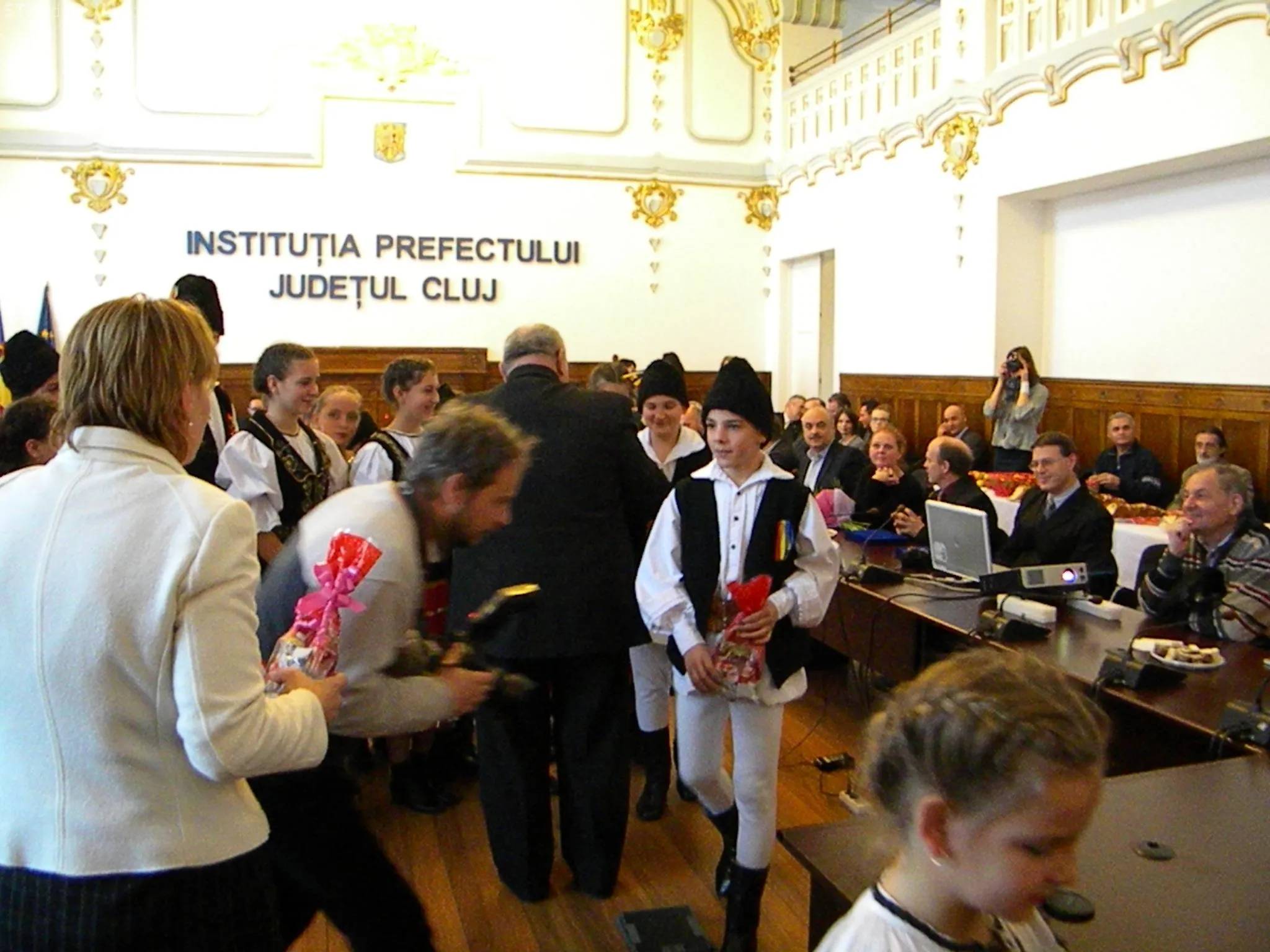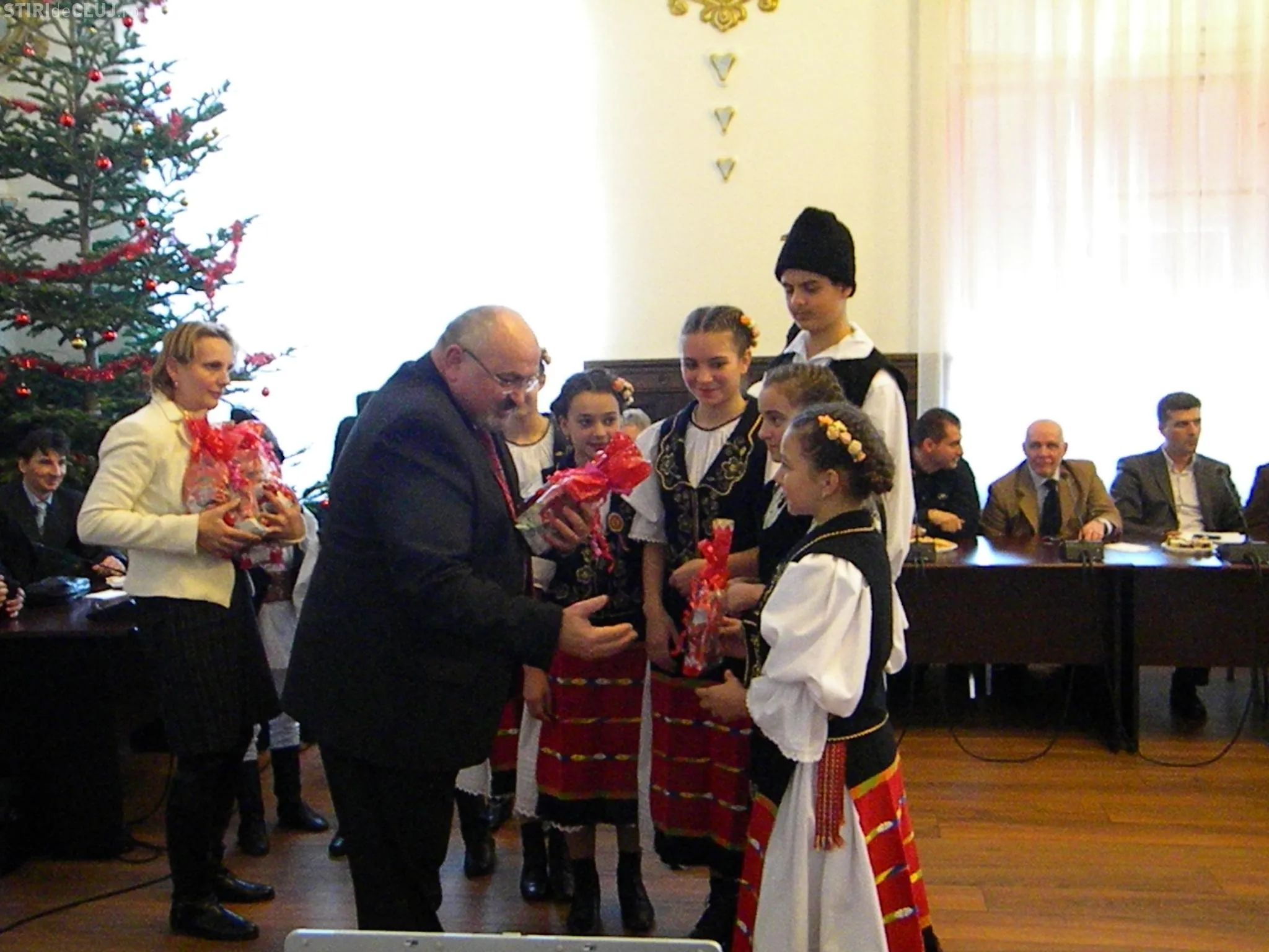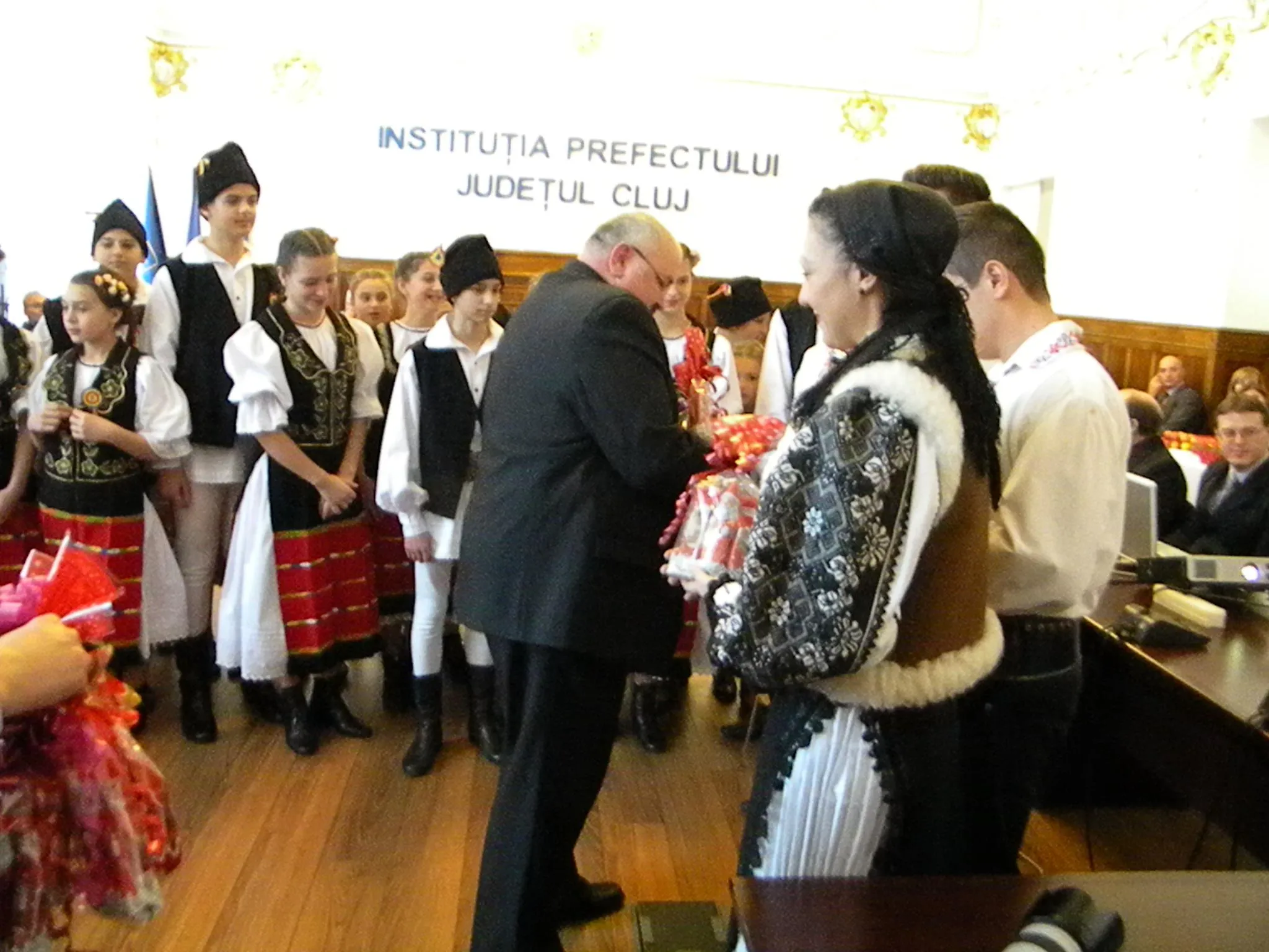 La sfârşitul evenimentului, Instituţia Prefectului a fost colindată de un grup de copii de la un ansamblu folcloric din Cluj-Napoca.