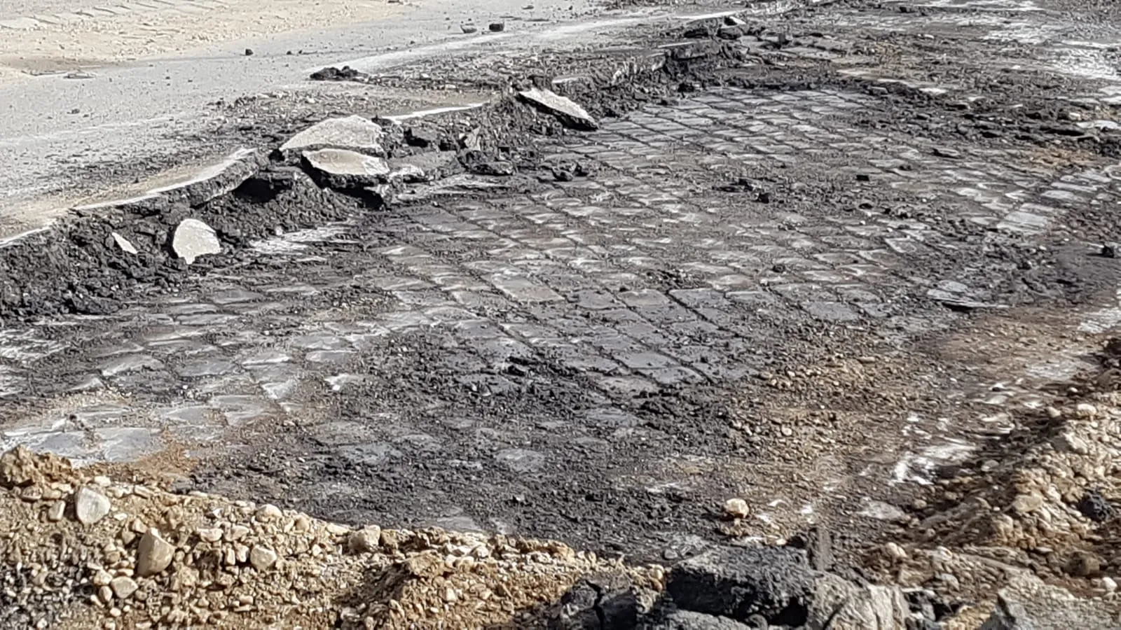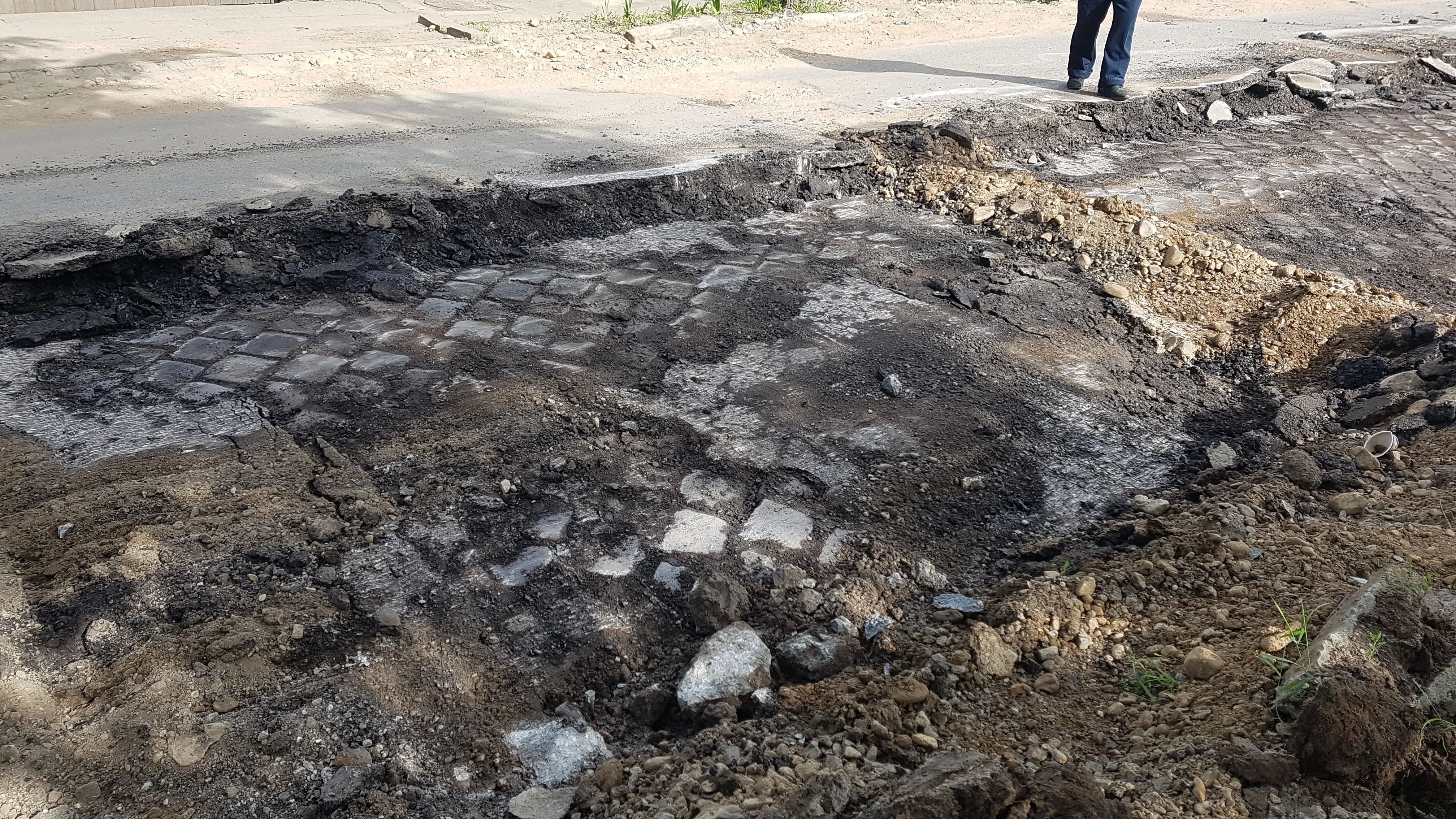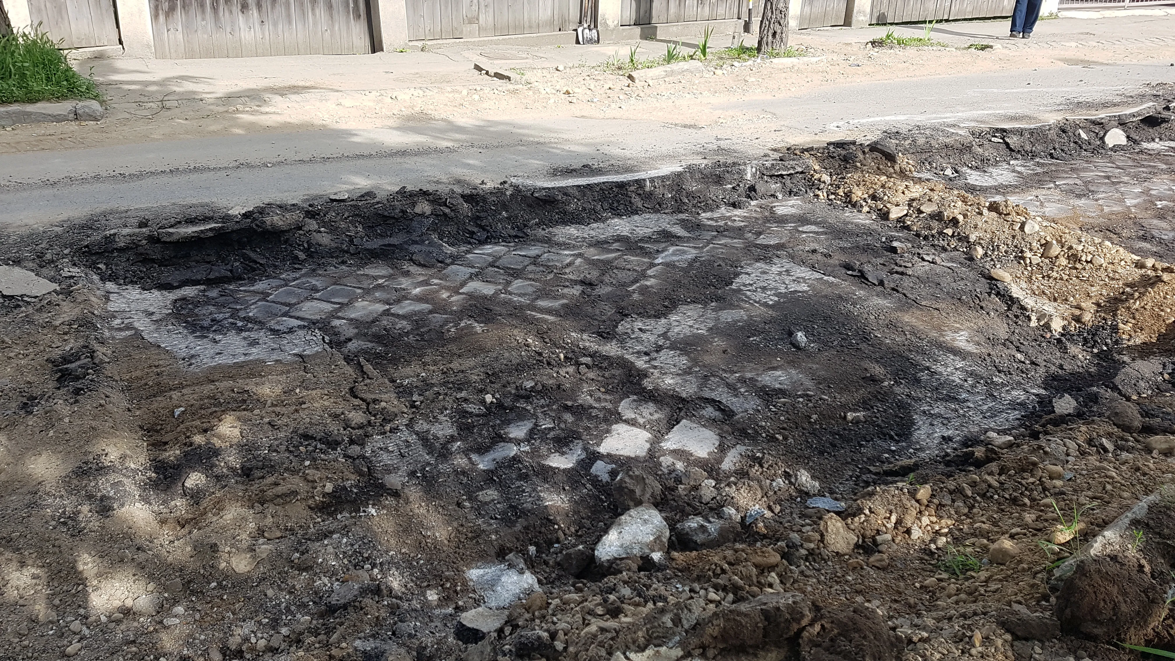 Asfaltul pus deasupra nu a rezistat, dar drumul de piatră pun acum zeci de ani este tot acolo. Aceste fotografii arată calitatea lucrărilor care se fac din fonduri publice.