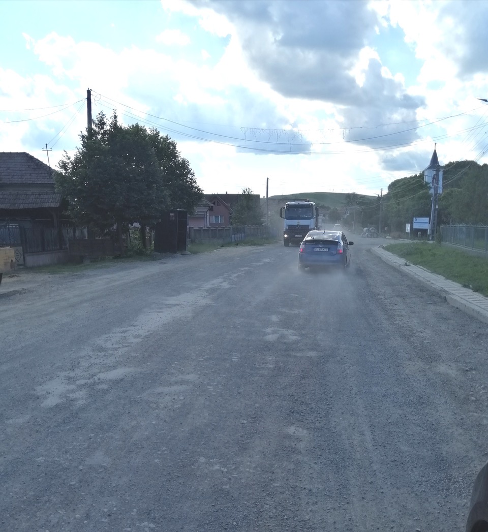 -starea precară a drumului în lucru, cu gropi, denivelări mari, care duc la daune asupra mașinilor (poza atașată este de duminică, în satul Fodora)