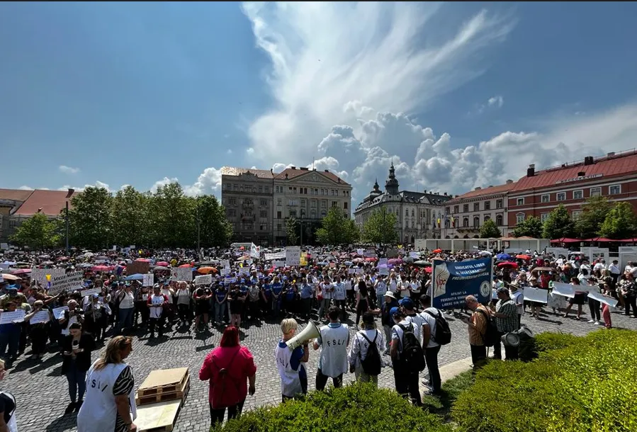 Profesorii clujeni au protestat în Piața Unirii, unde au intonat imnul României și au dansat în horă - VIDEO