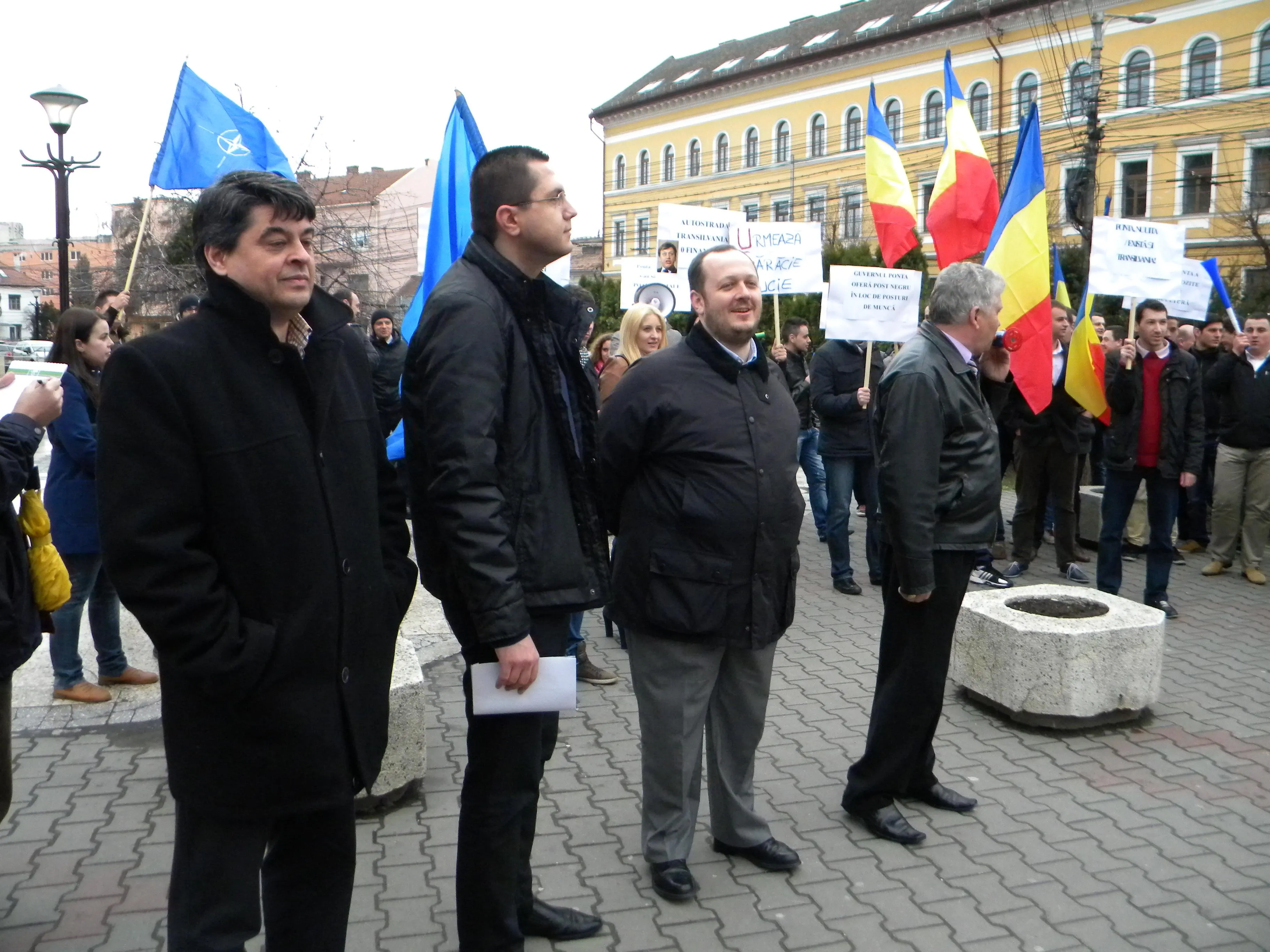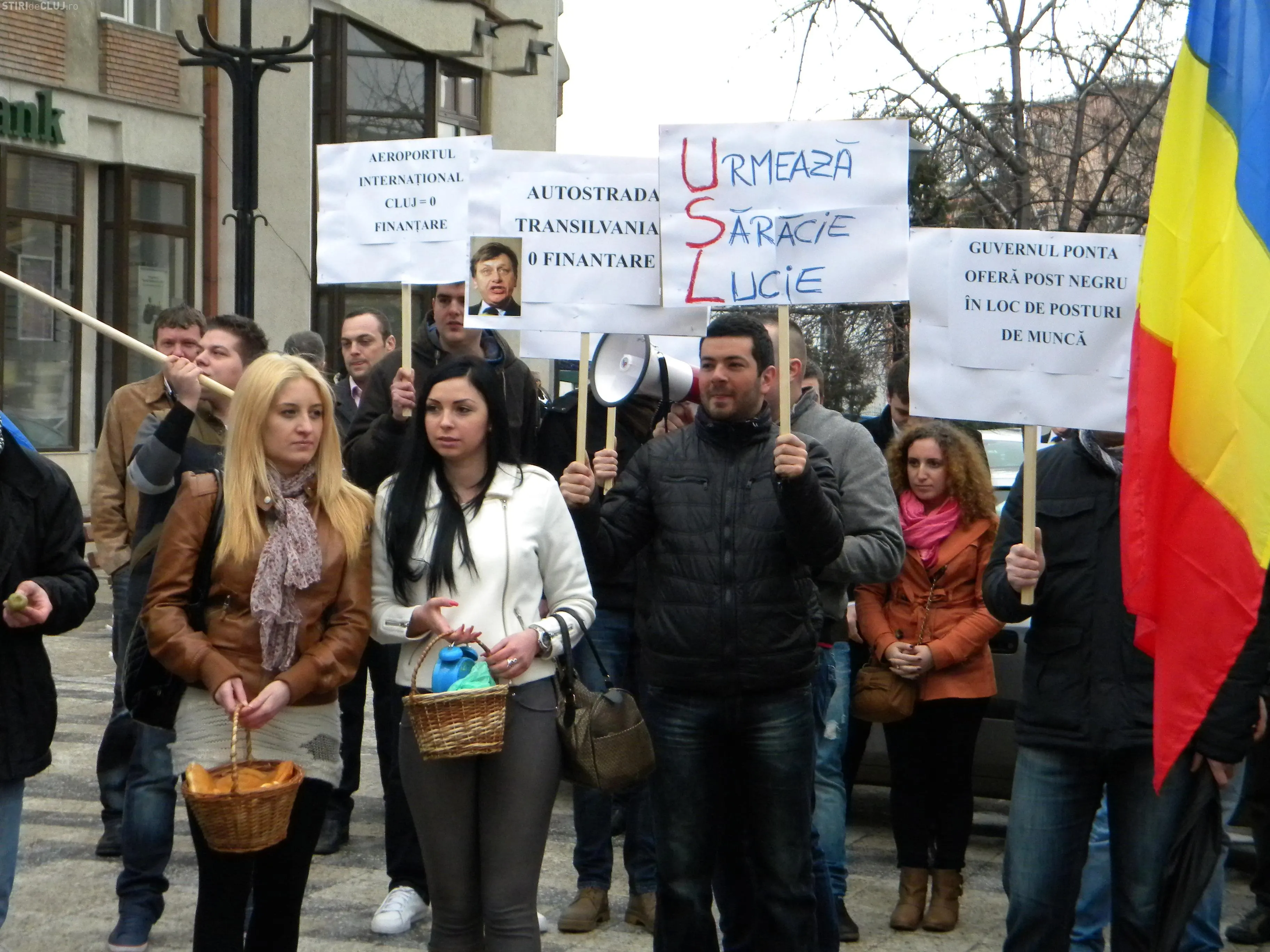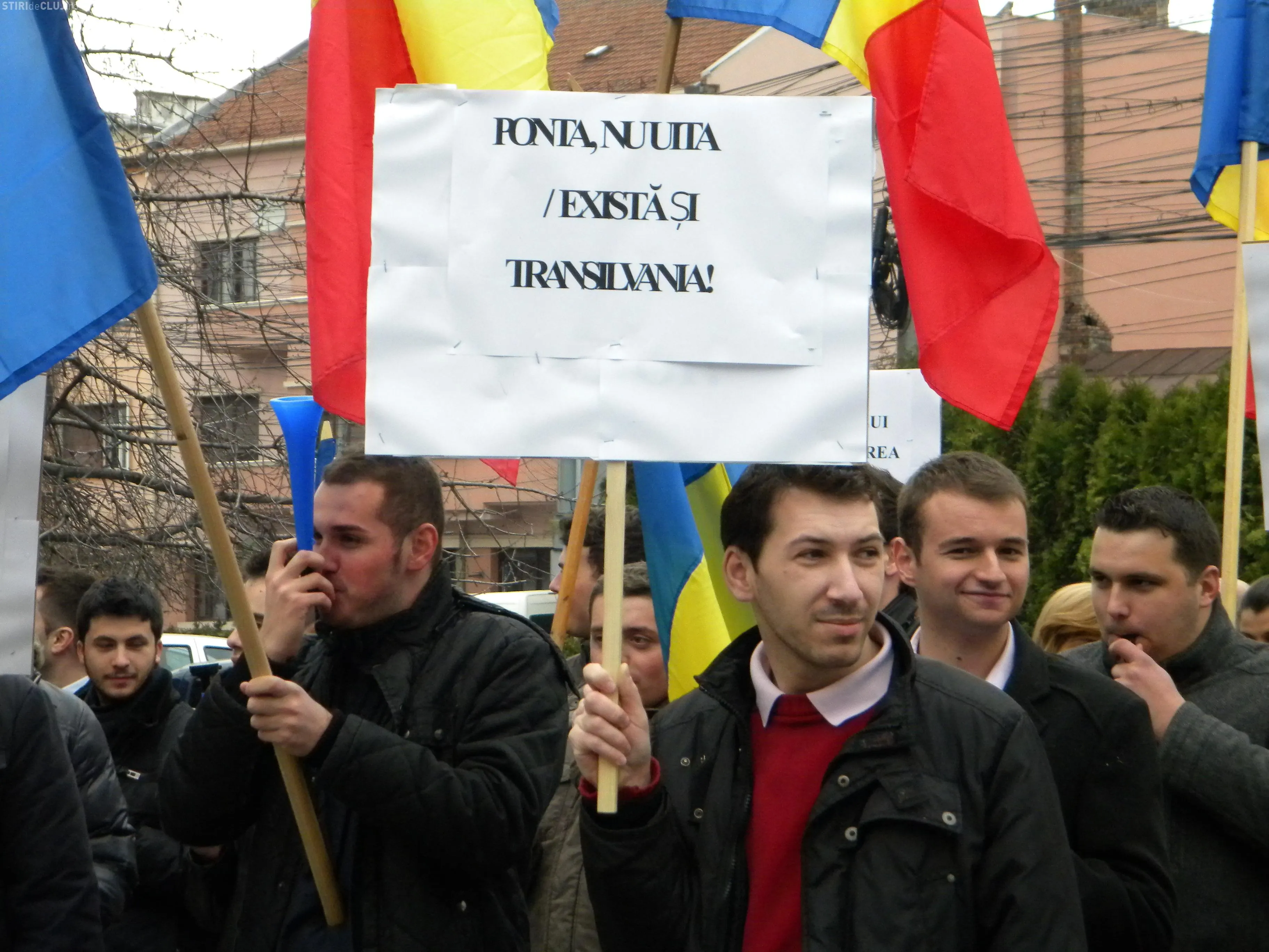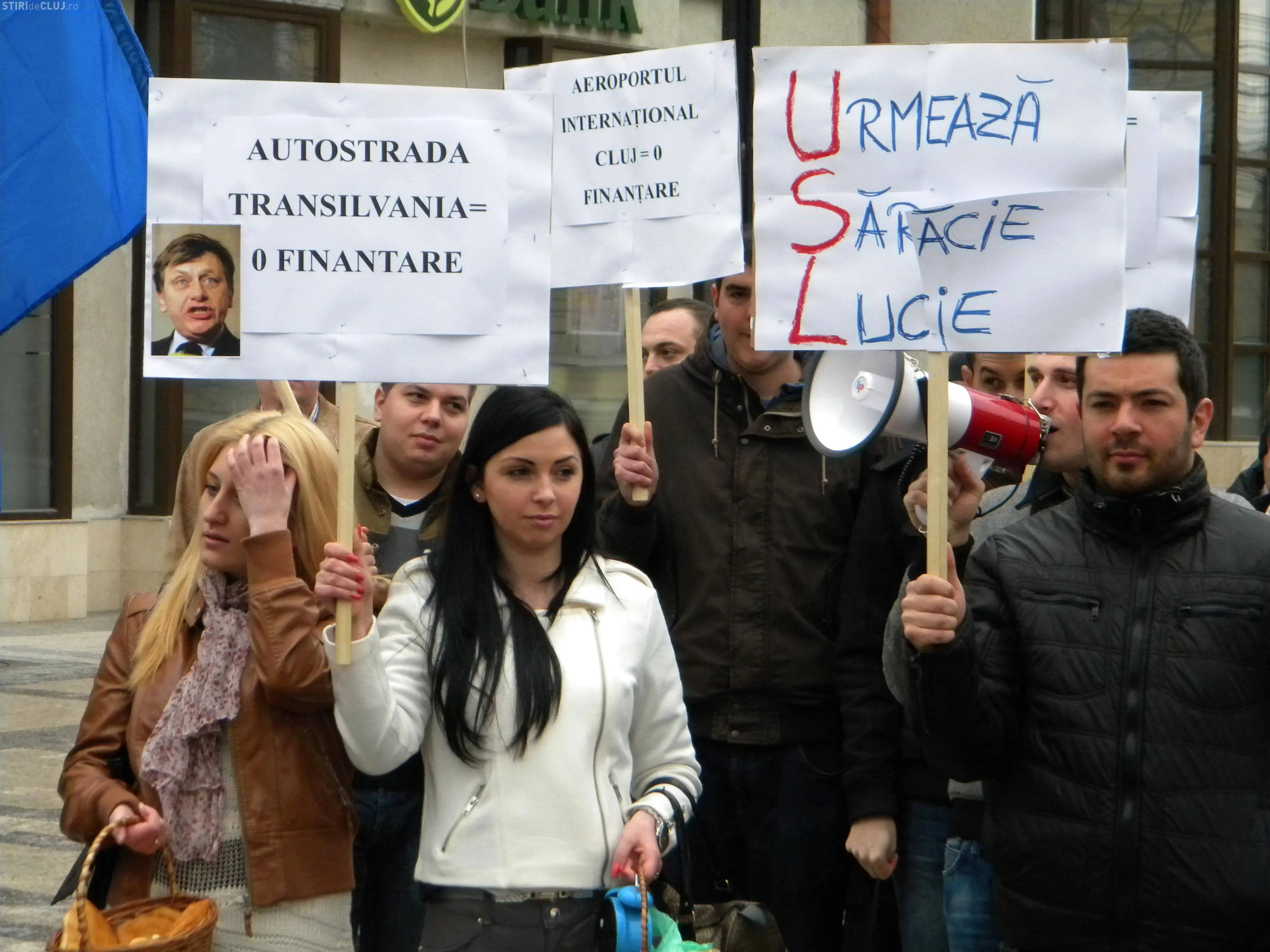Circa 60 de persoane, toți membri PDL Cluj-Napoca, au participat la protestul organizat în fața Prefecturii Cluj. Pe durata manifestării au fost scandate lozinci împotriva premierului Victor Ponta și au fost afișate pancarte cu mesajele: ”Aeroportul Internațional Cluj = 0 finanțare”, ”Autostrada Transilvania = 0 finanțare”, ”Urmează sărăcie lucie”, ”Ponta, nu uite/ Există și Transilvania” și ”Victor Ponta nu vrea în Schengen numai în URSS”.