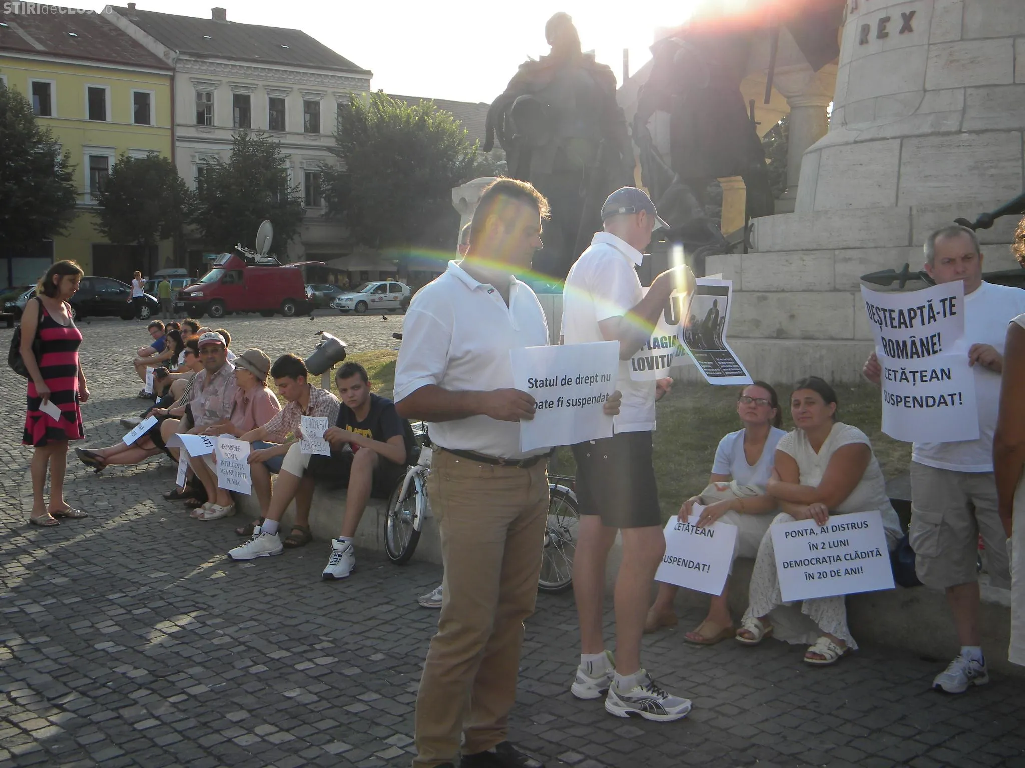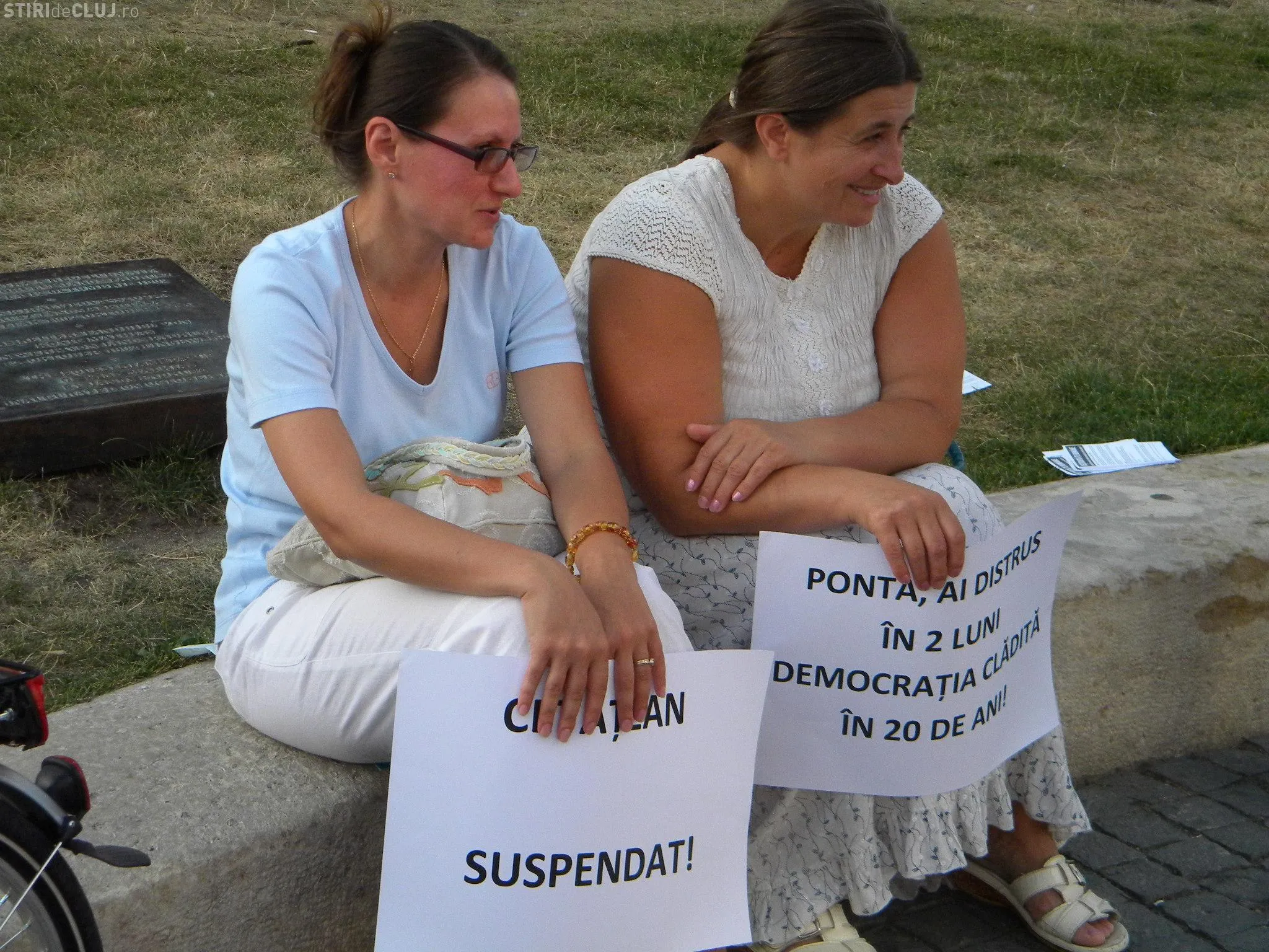 Clujenii s-au adunat și sâmbătă seara în Piața Unirii pentru a protesta împotriva lui Victor Ponta și a coaliției USL, care l-a suspendat pe Traian Băsescu.