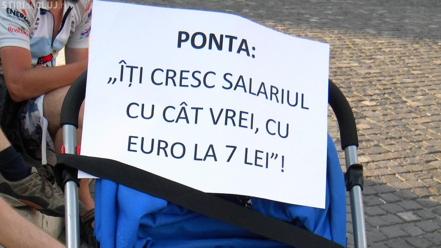 Protest ANTI USL în Piața Unirii: ”Ponta: Îți cresc salariul cu cât vrei, cu Euro la 7 lei” VIDEO