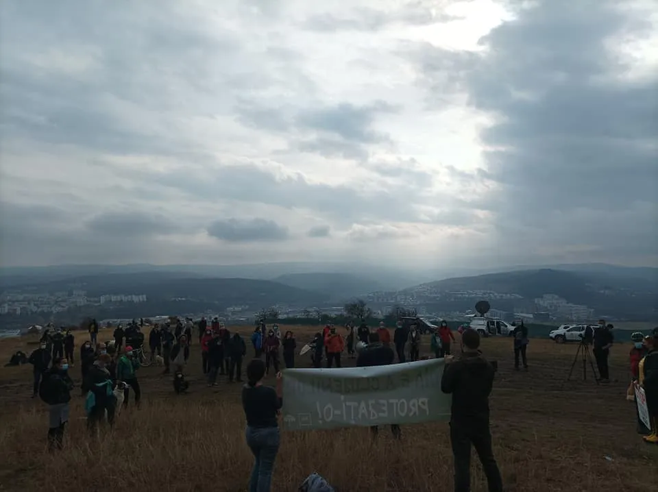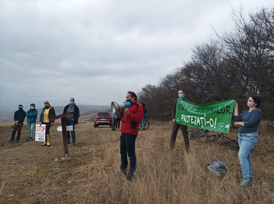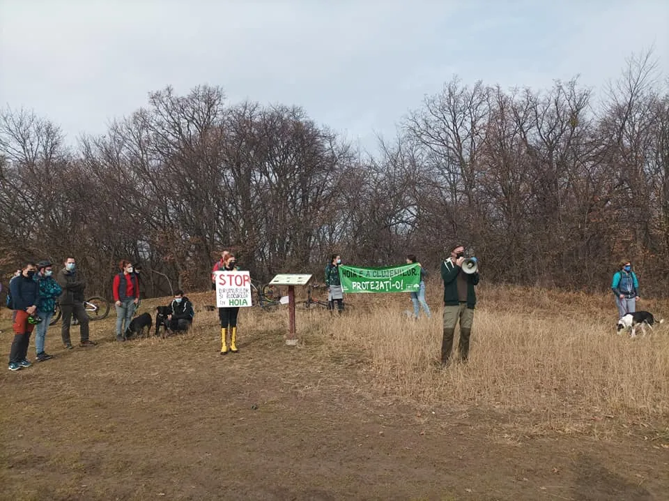 Protest în Hoia, împotriva blocurilor care ”mușcă” din pădure: Jos labele de pe pădurea Hoia! - FOTO