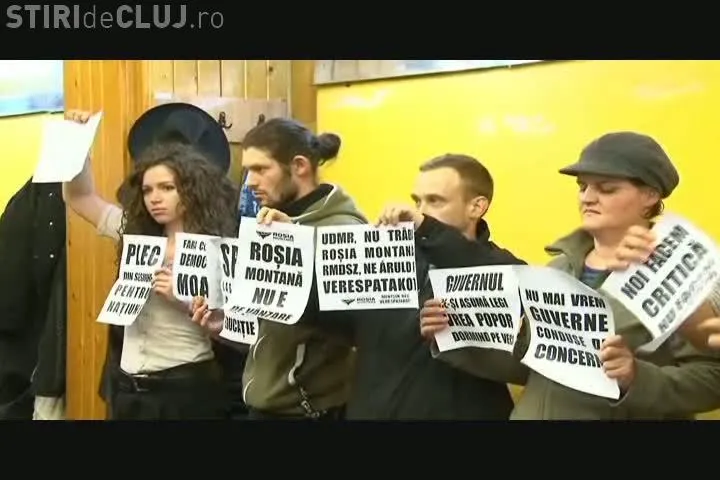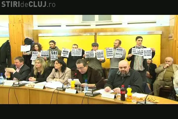 Protestatarii din Piata Unirii au luat cu asalt Consiliul Local si l-au chemat pe Radu Moisin la manifestatie VIDEO