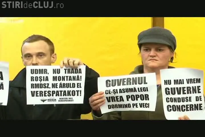 Un grup de protestatari din Piata Unirii a manifestat de la ora 15.00 in Consiliul Local si l-au chemat pe primarul interimar, Radu Moisin, la manifestatia de la ora 18.00.
