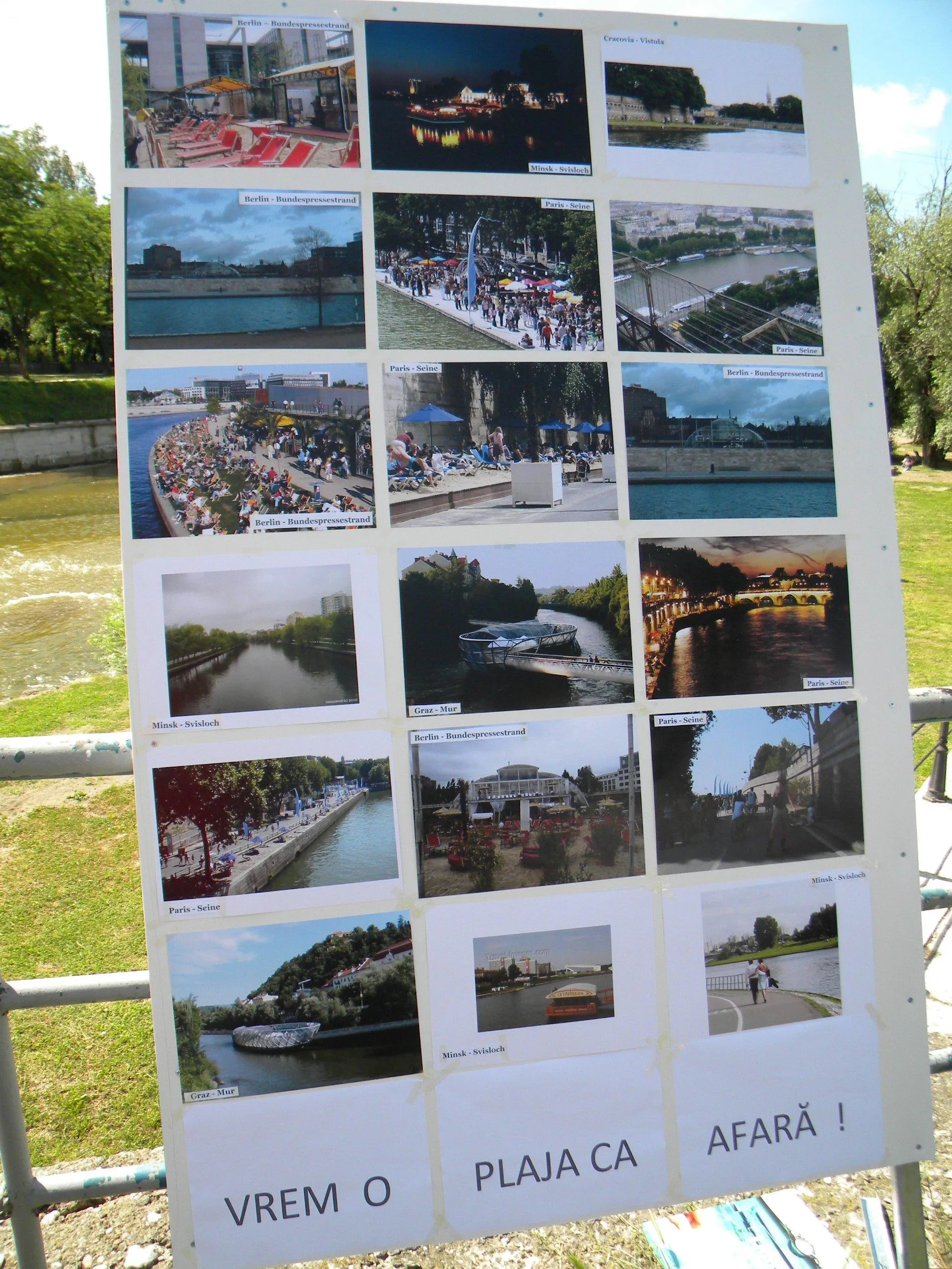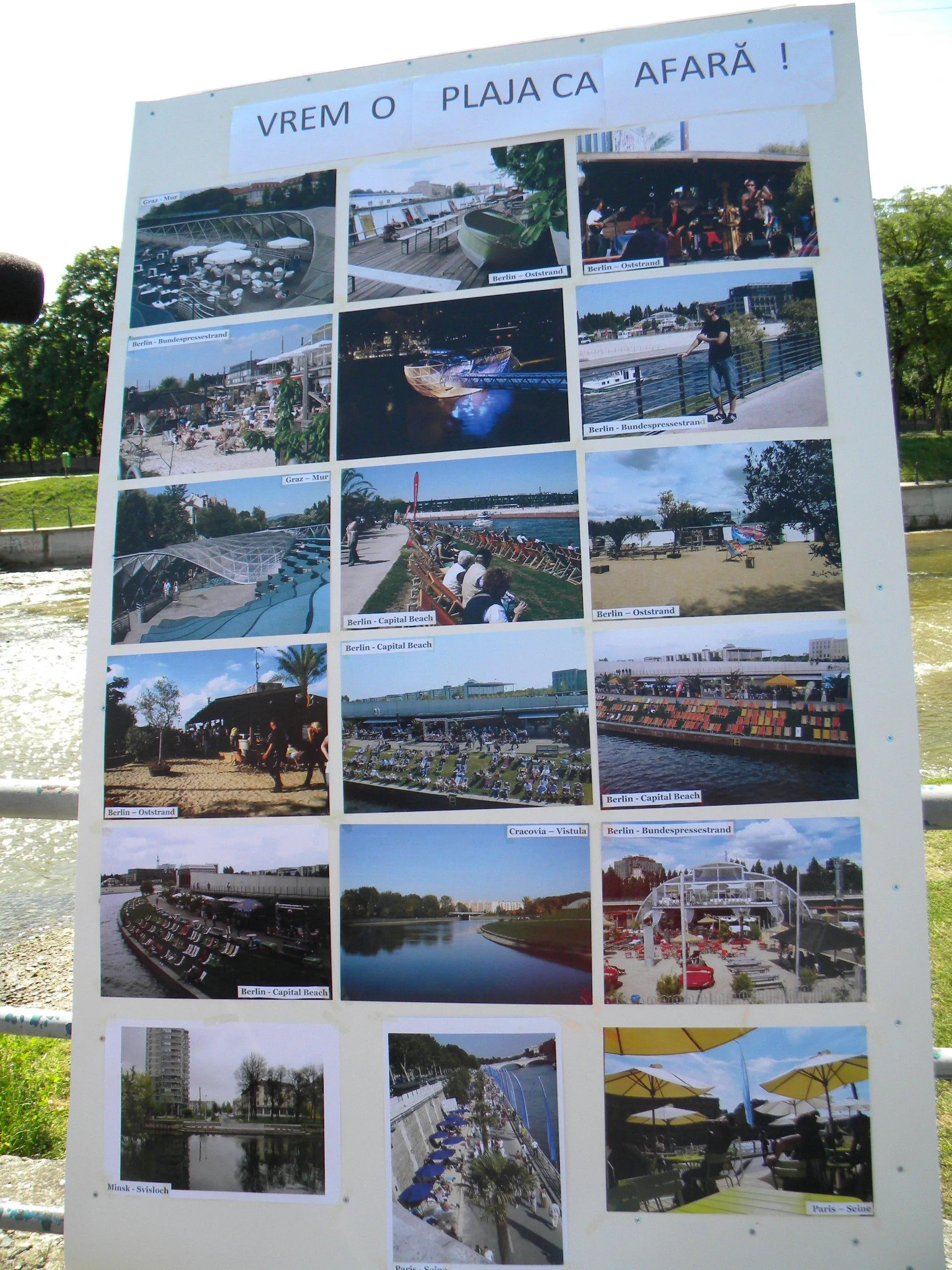 Candidatii PSD pentru alegerile din 2012 au montat pe malul Somesului, in cartierul Grigorescu, la cativa metri de "plaja lui Boc" cateva panouri cu fotografii, care prezinta modul de rezolvare a unei zone de agrement in capitalele europene, in comparatie cu investitia de la Cluj-Napoca, in valoare de 3 milioane de lei.