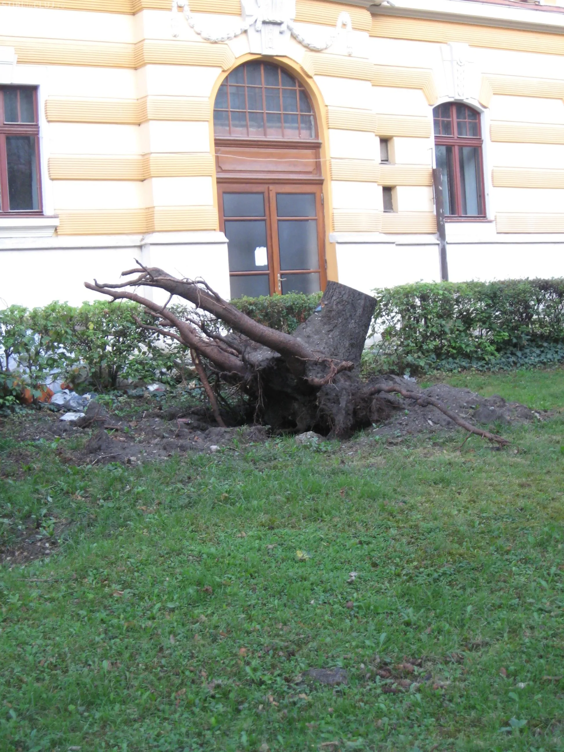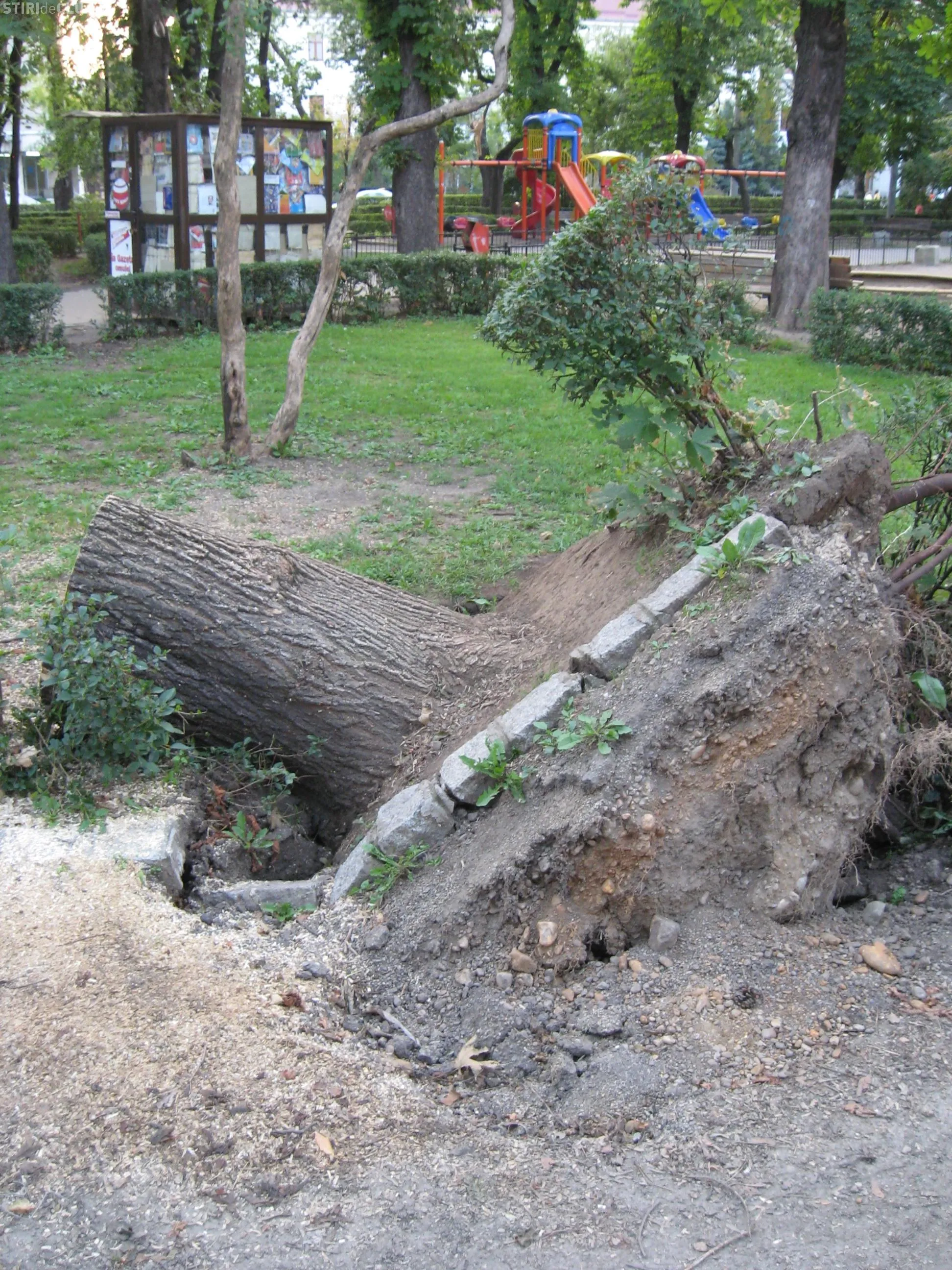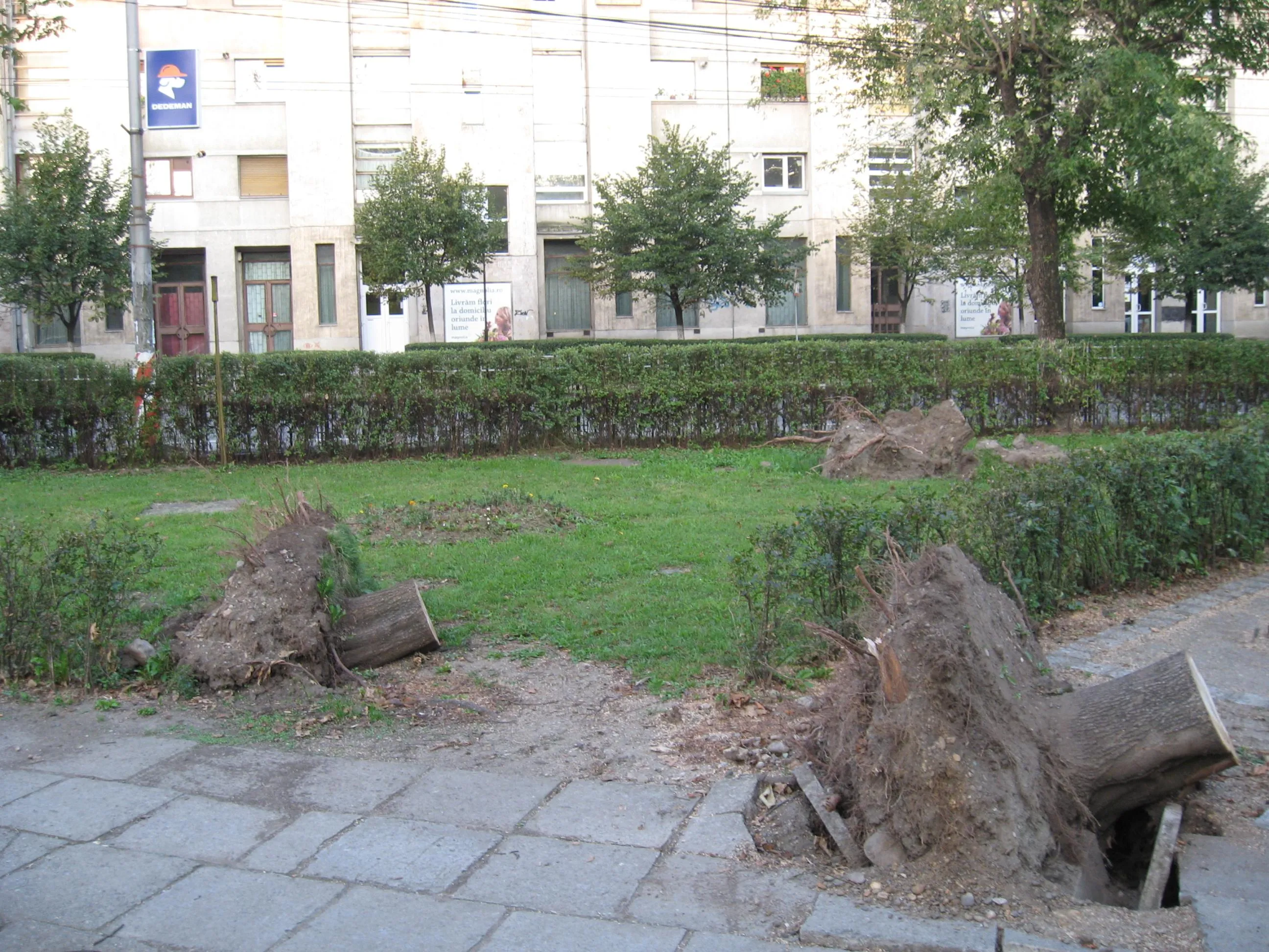 Radacinile pe jumatate smulse din pamant au fost uitate de cei care s-au ocupat de salubrizarea zonei. Mai multi copaci din Parcul Operei au fost doborati de furtuna din 20 iulie. Desi muncitorii au curatat zona de crengi si frunze, radacinile nu au fost ridicate.