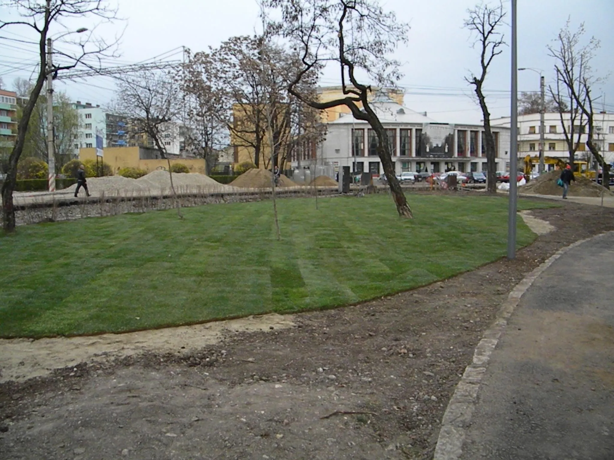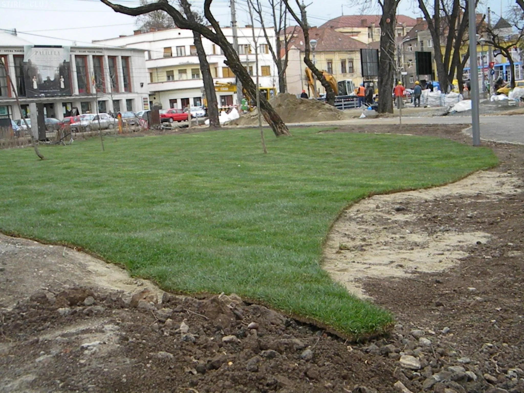 Firma care se ocupa de amenajarea Parcului Central a inceput amplasarea rulourilor de gazon la intrarea dinspre Teatrul Maghiar. Alte doua zone urmeaza sa fie amenajate la fel.